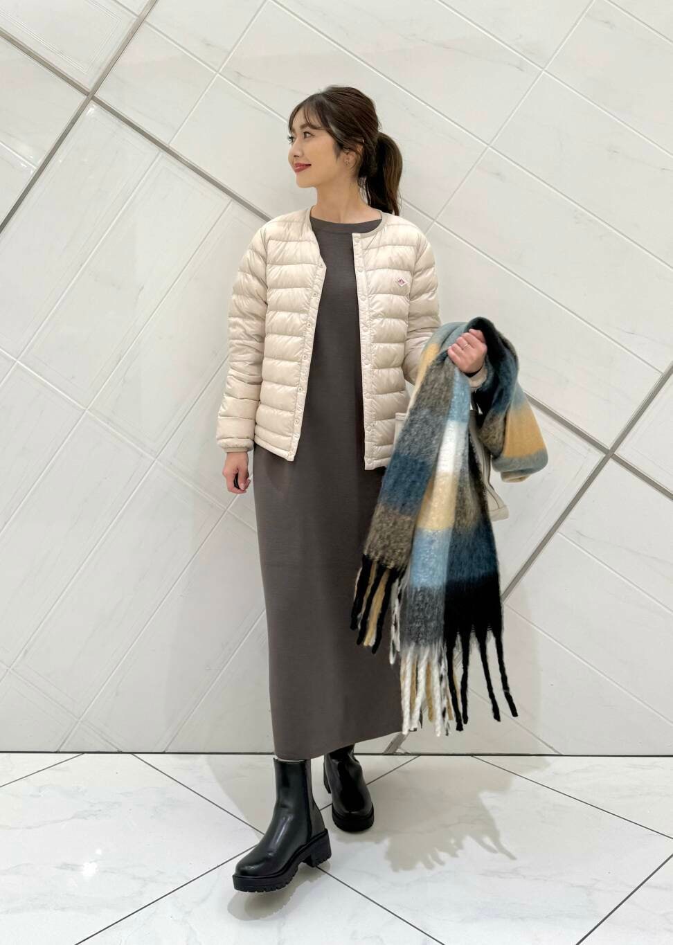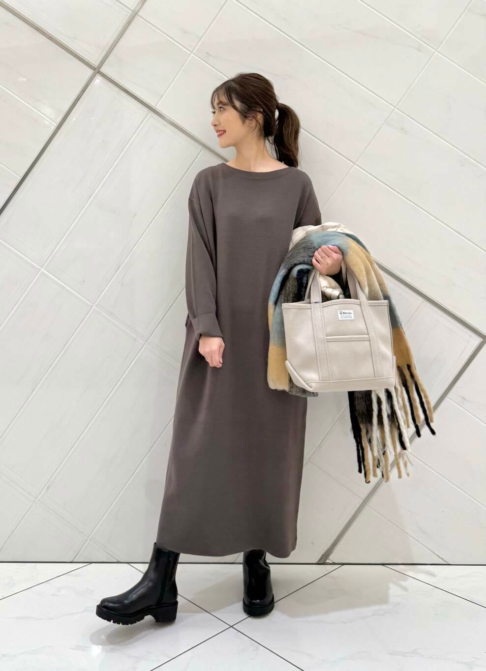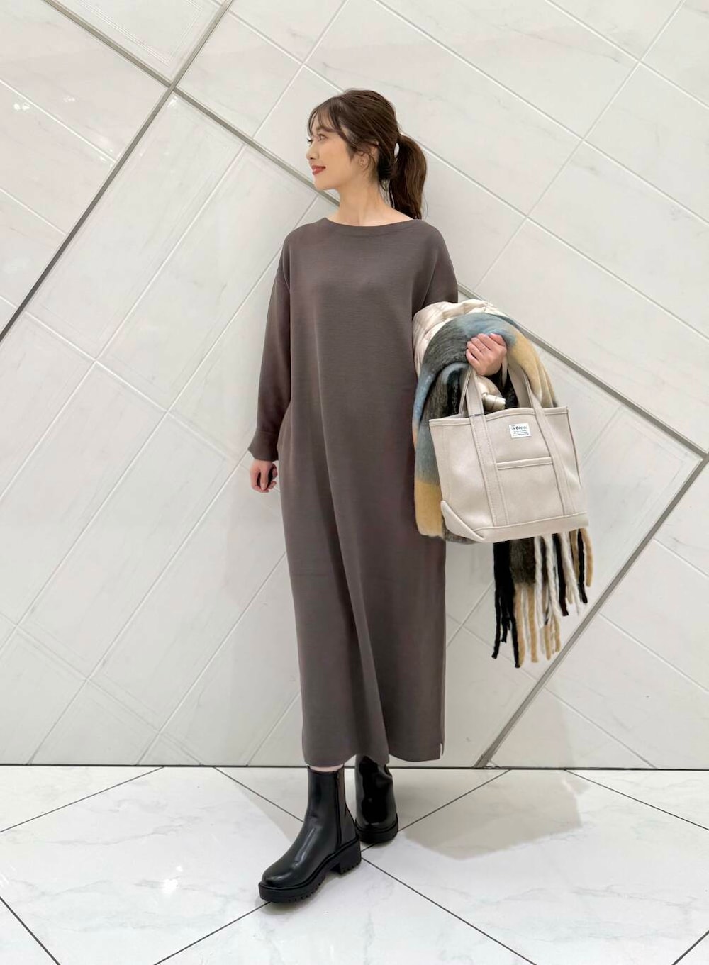 ワンピースは伸縮性のある着心地のいいニットワンピースで1枚でさらっと着ることができます。