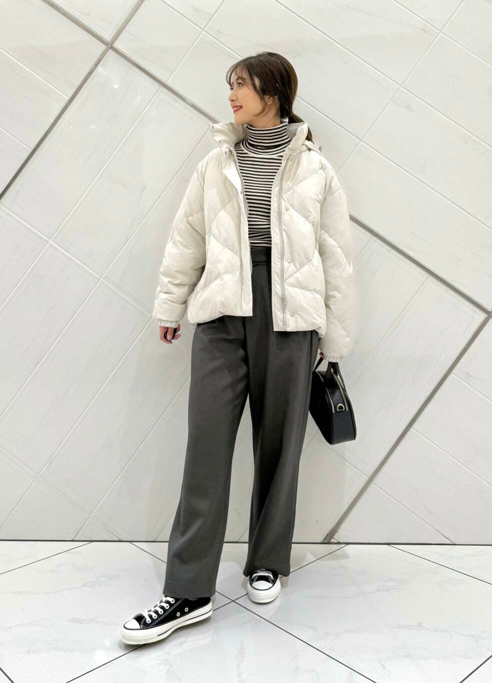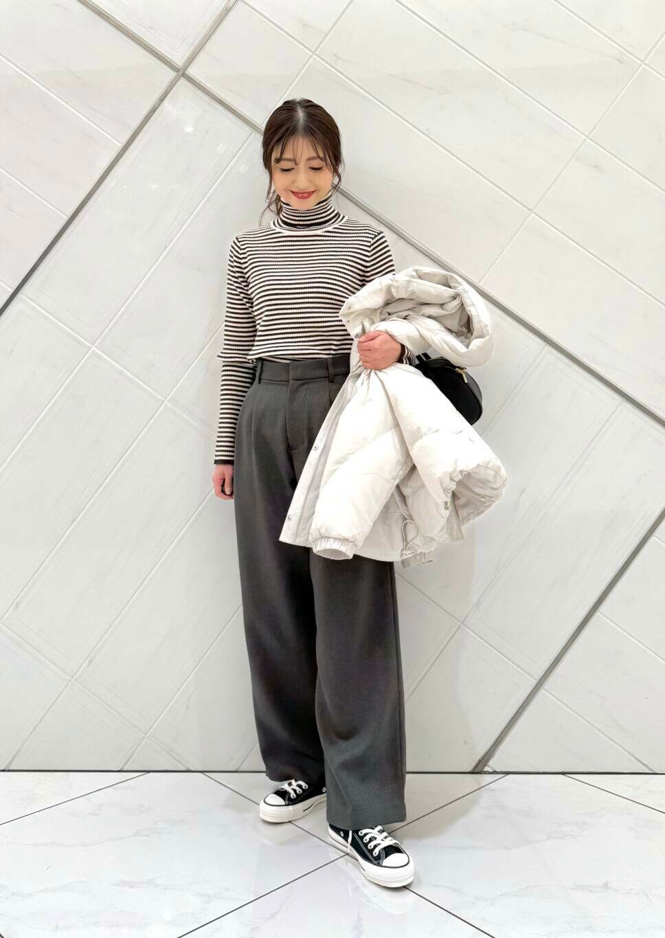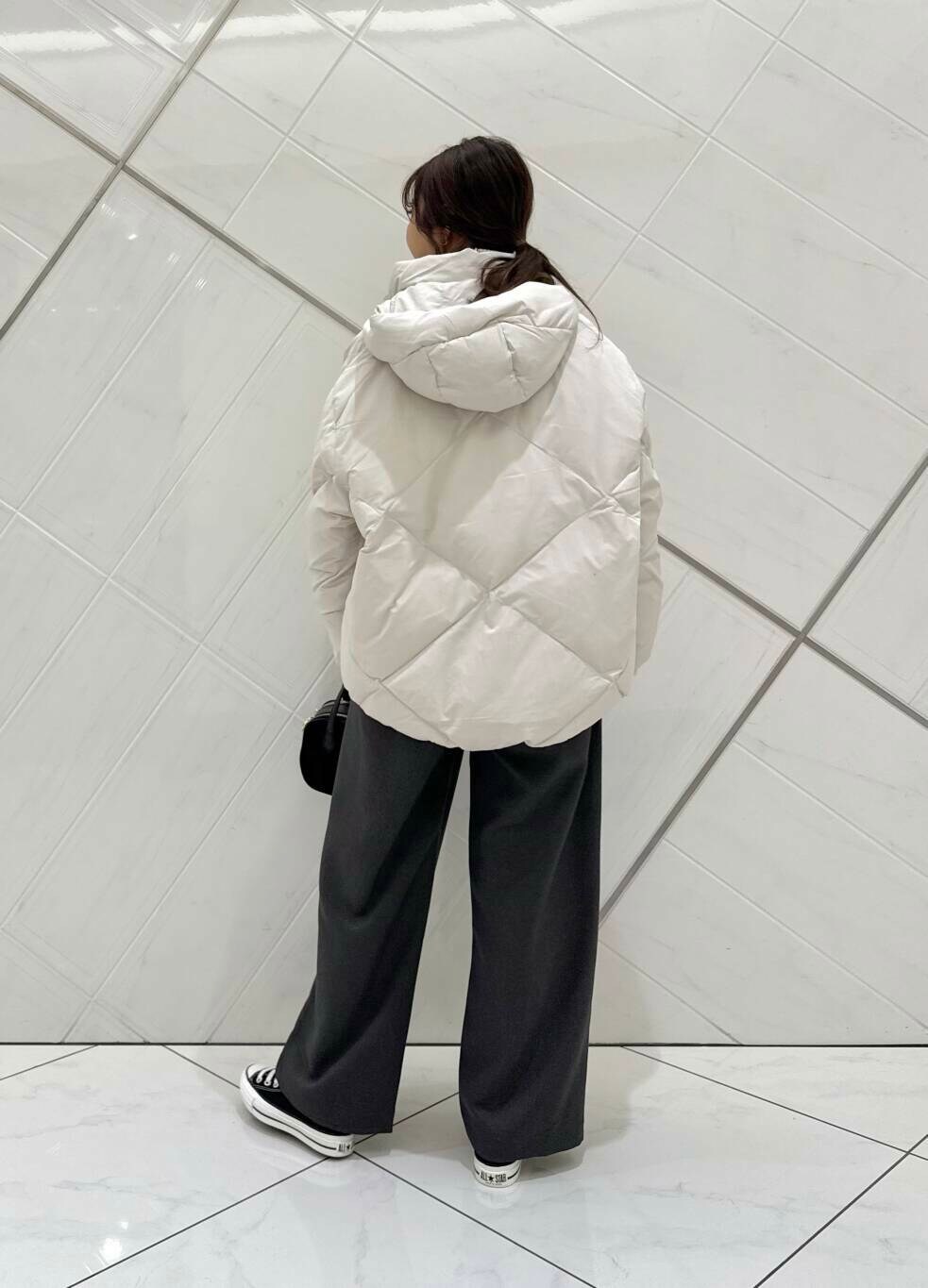 ダウンはとてもふかふかで肌触りもよく、軽いので着心地抜群です。厚手のトップスの上からでも羽織りやすく、フードが取り外しができるのも嬉しいポイント。