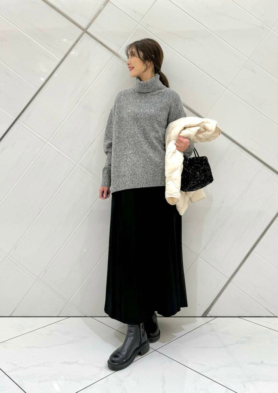 ニットは厚みのあるハミルトンウールで暖かく寒がりの私にはちょうどいいアイテムです。