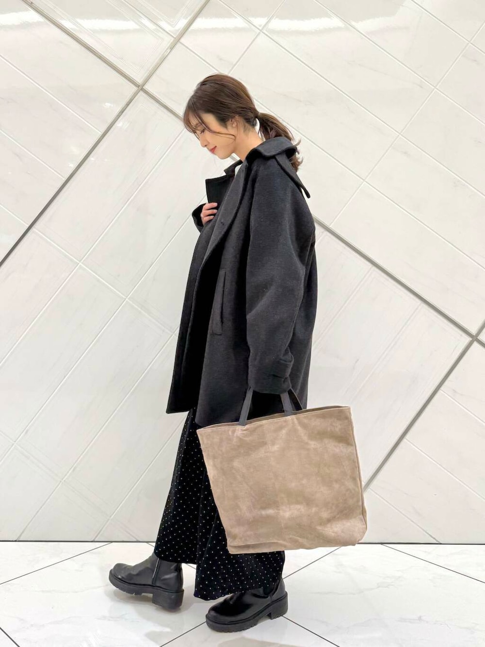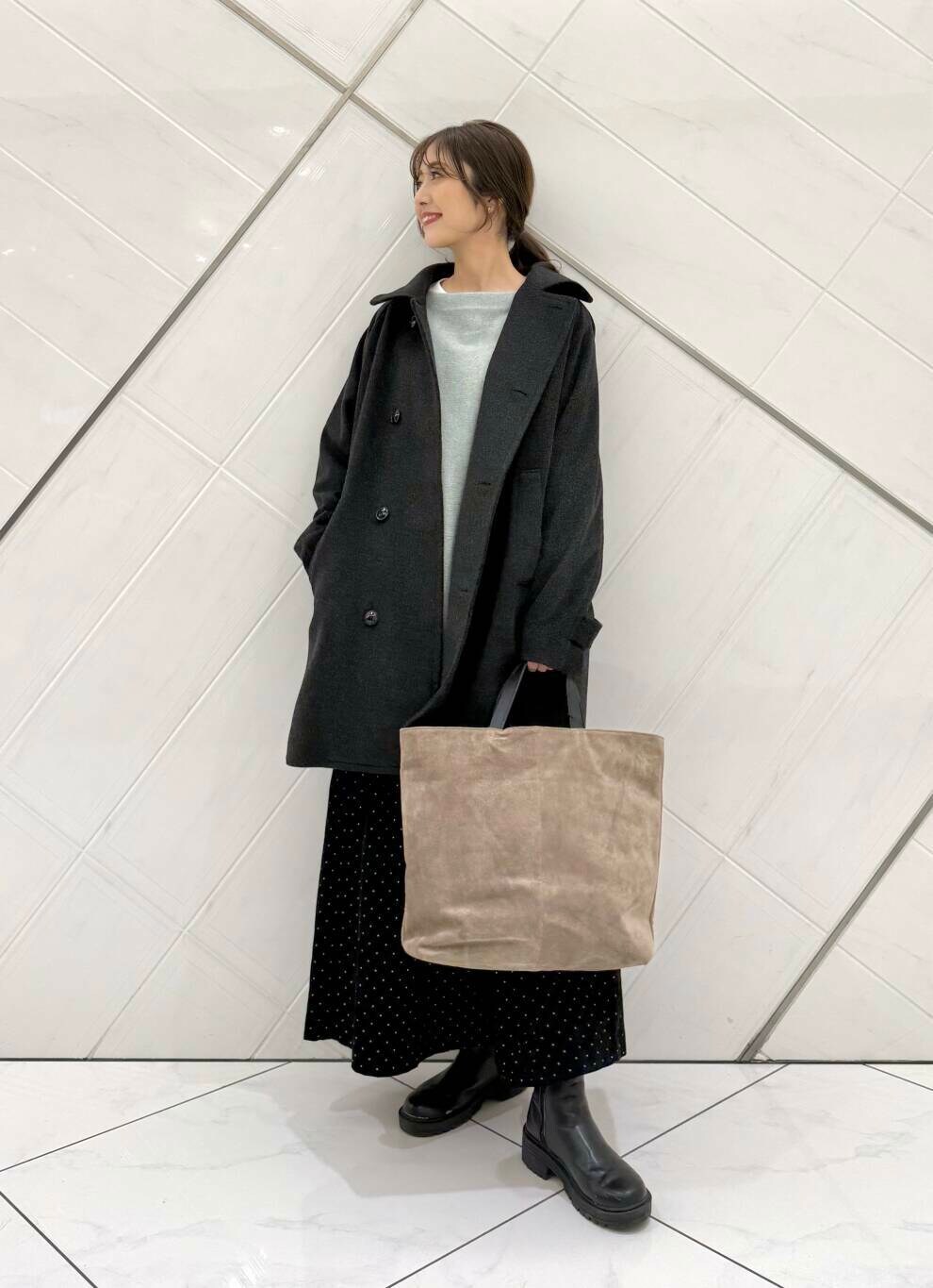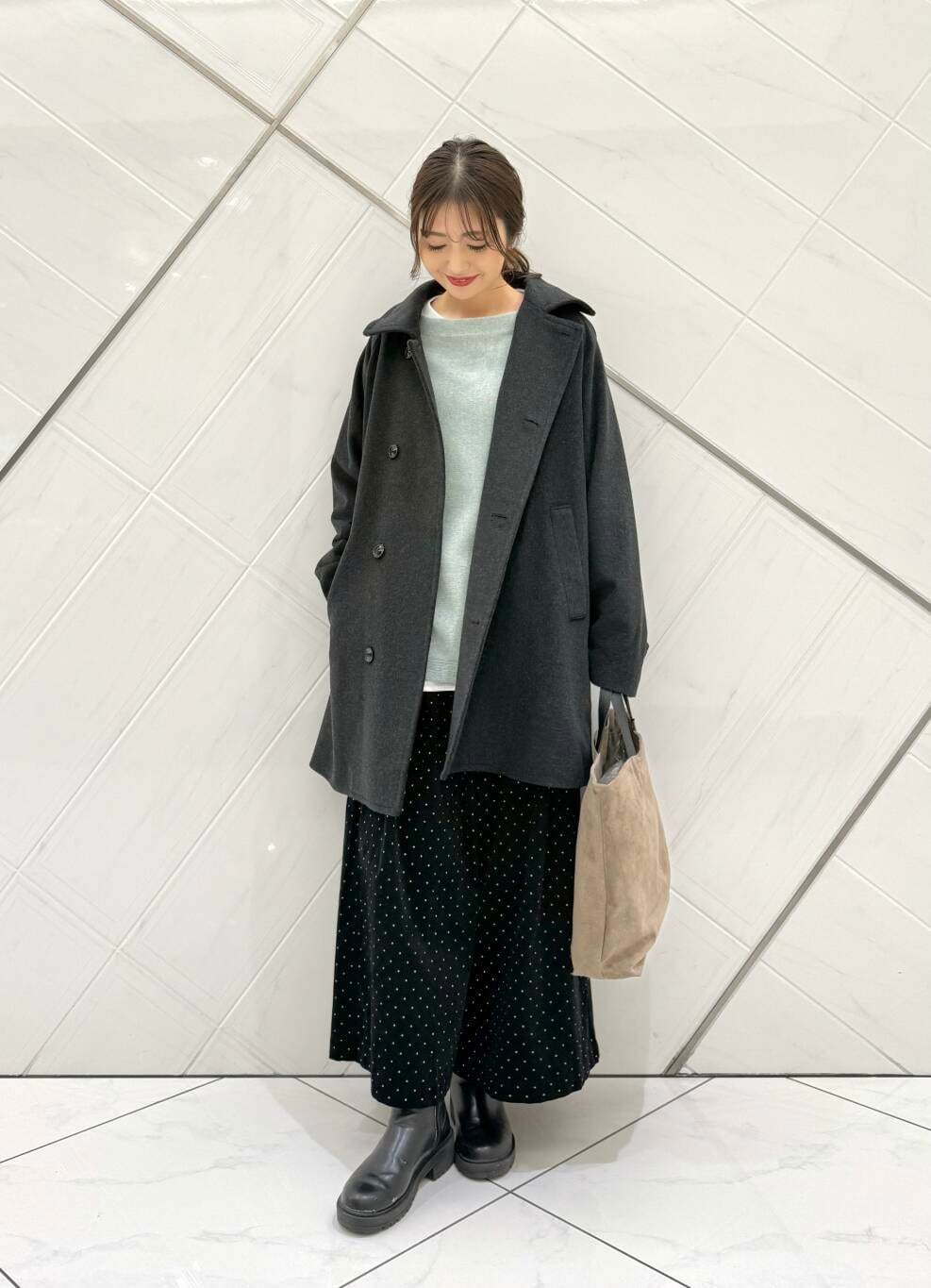 私の身長で太ももの中間あたりの着丈で、裏地のついたウールコートなので暖かいです。