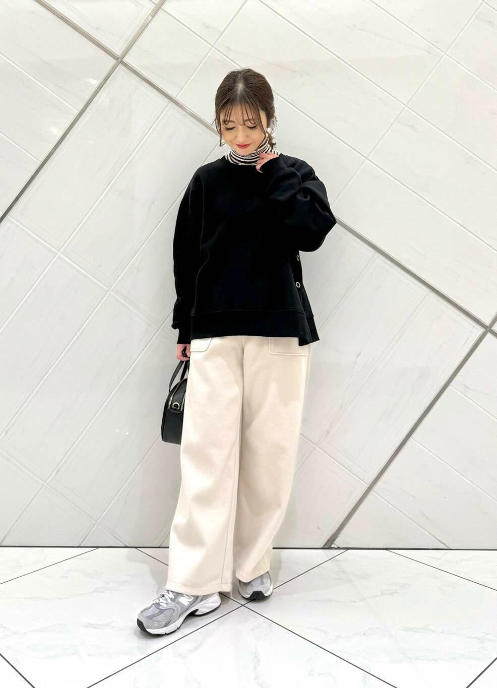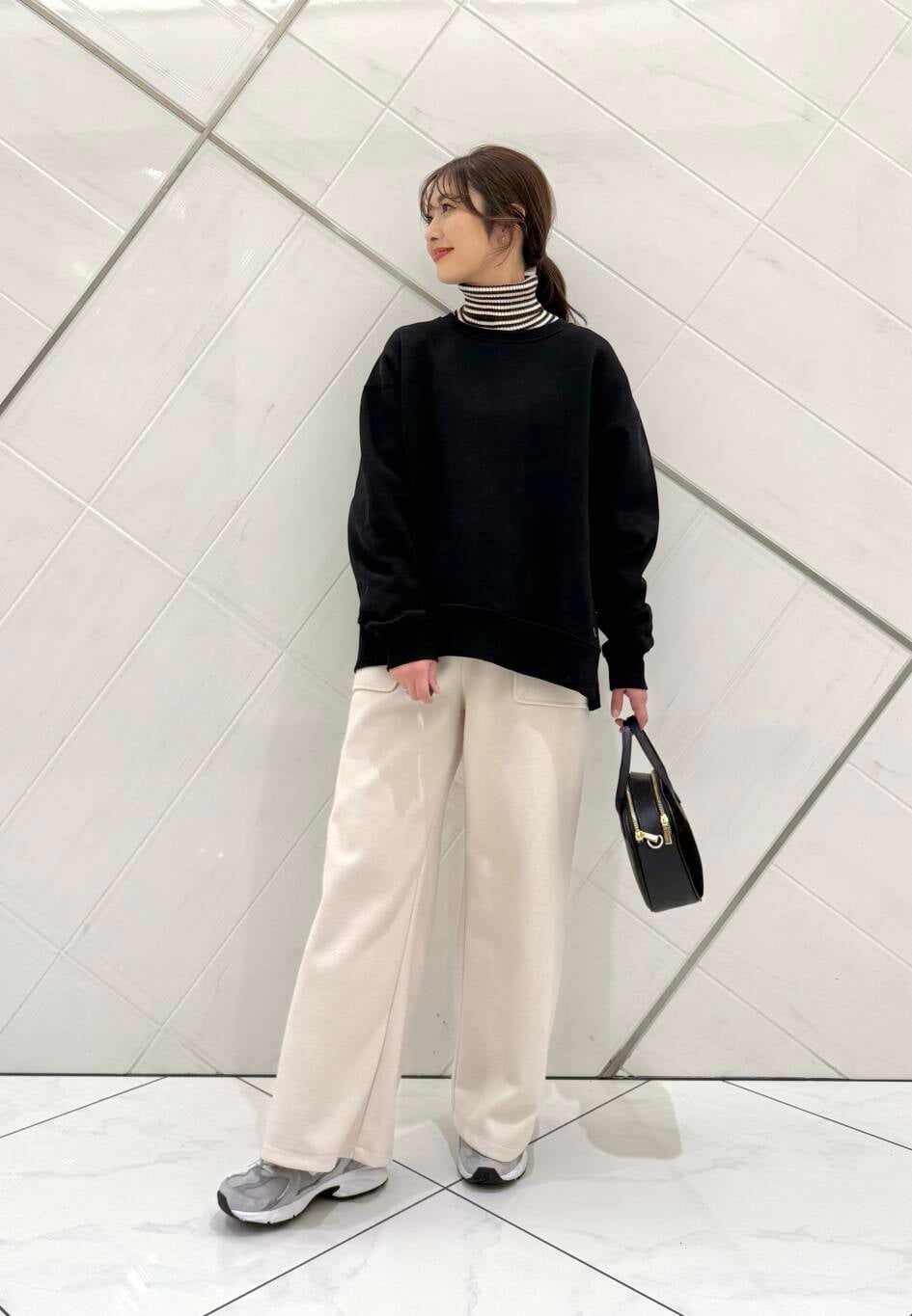 スウェットは裏起毛で暖かく、身幅が広めなのでインナーのレイヤードスタイルもおすすめです。