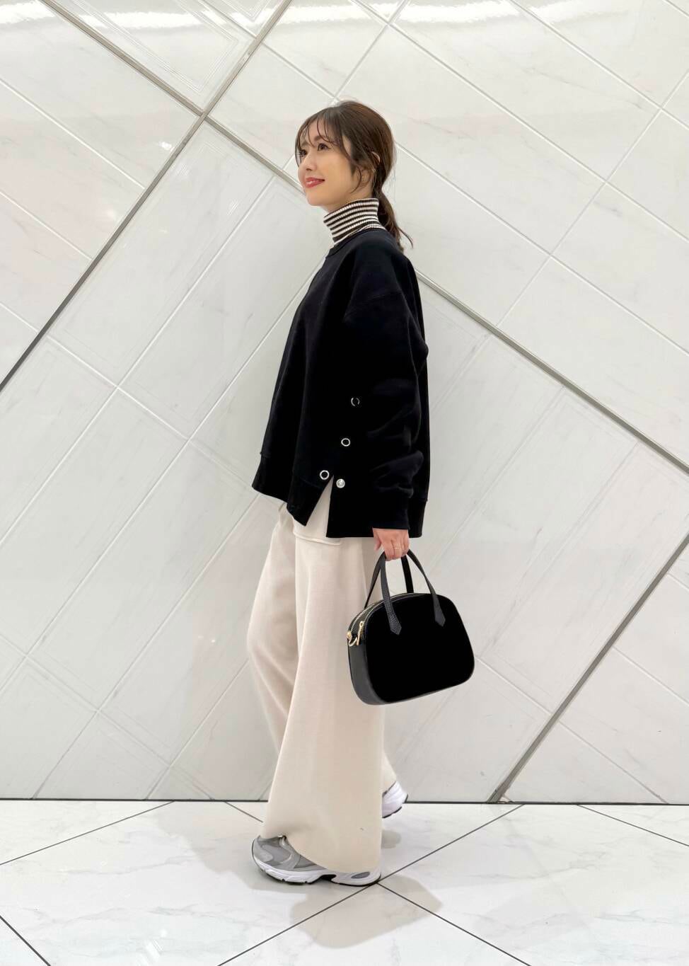 ボトムは厚みのあるメルトン生地で暖かくて、トップスインするとウエストもちょうどよく、美シルエットで冬大活躍すること間違いなしです(^^)