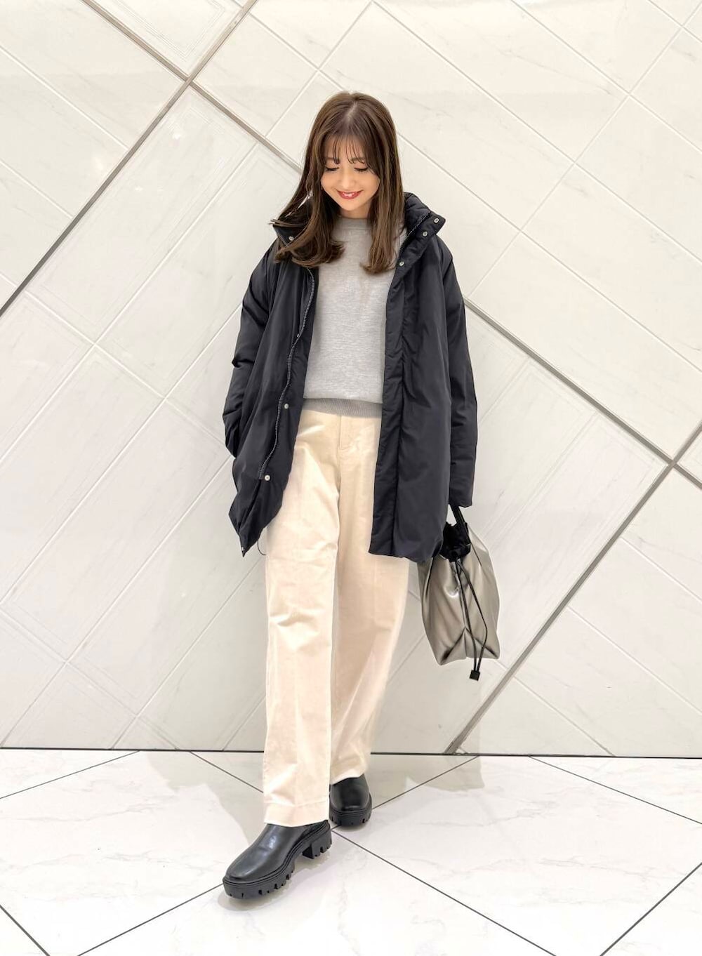 アウターはとても軽く、ふっくらとした丸みのあるシルエットが可愛らしく、暖かいです。