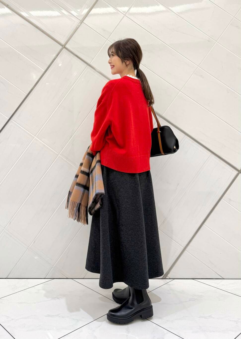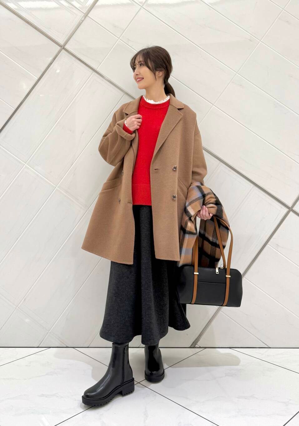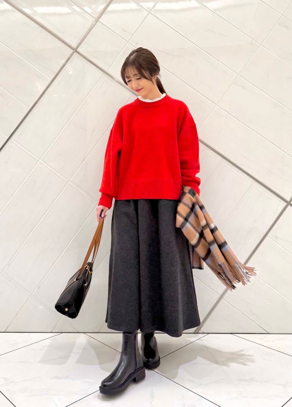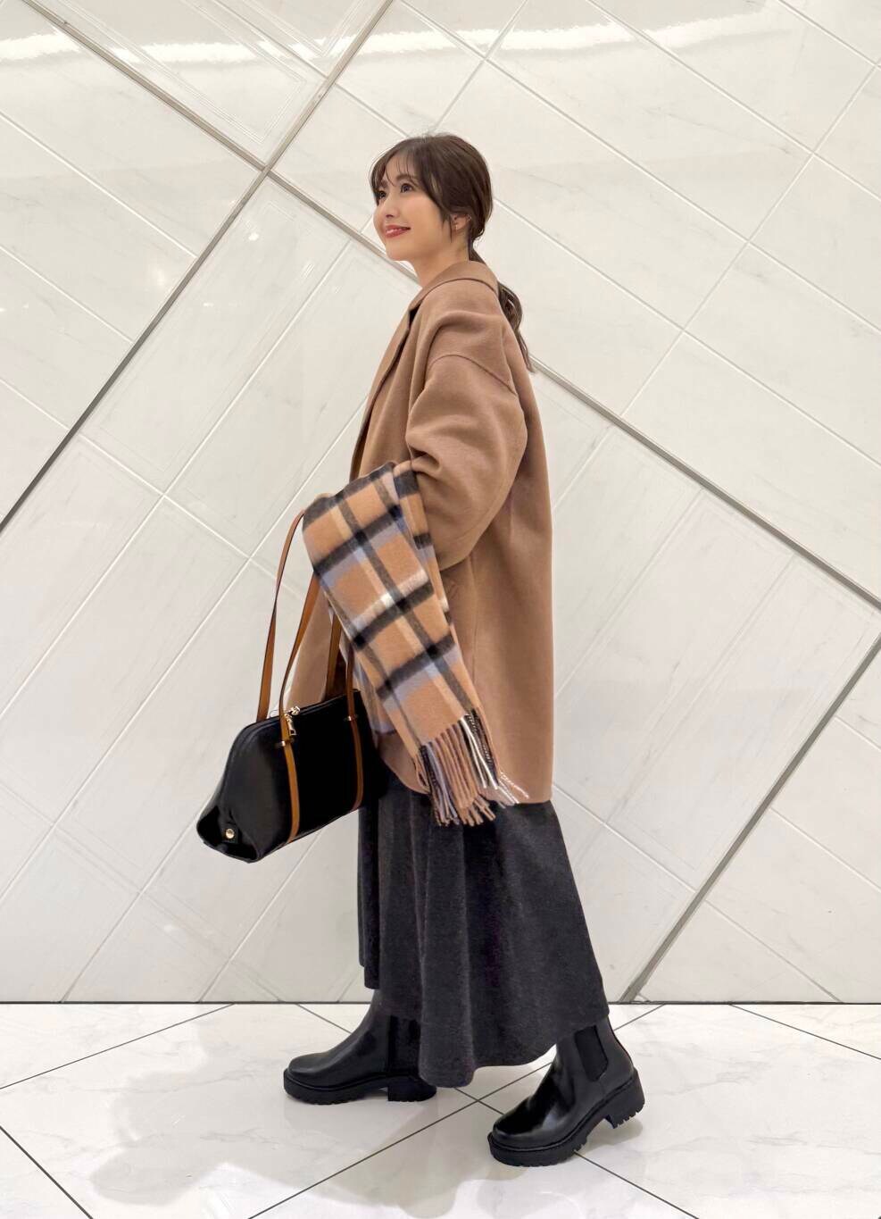 DOORSウールチェックストール- 着用カラー:
