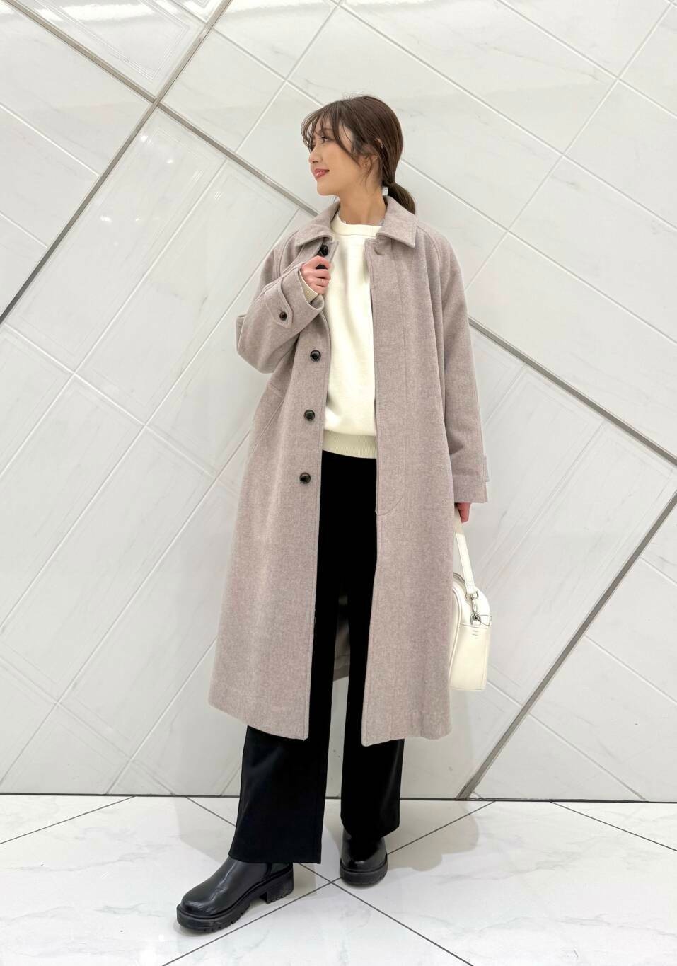 コートはロング丈ながらも軽く、ウール100%の素材や裏地も付いているので暖かいです。
