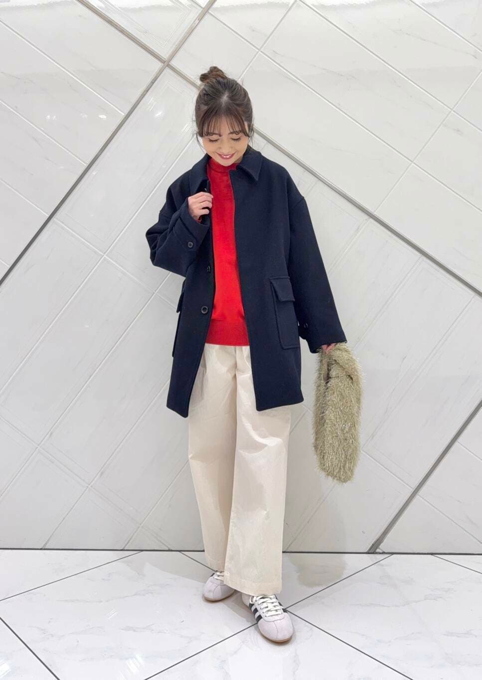 ボトムはFORK&SPOONのアイテムで、コットンナイロン素材でつるっとした肌触りです。