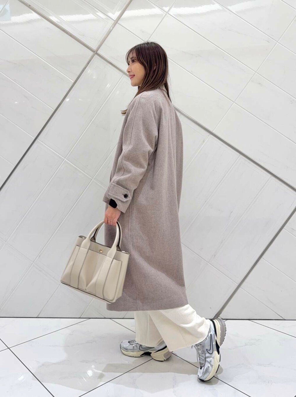 サイドにスリットが入っていることで、着膨れせずすっきりとしたシルエットです。