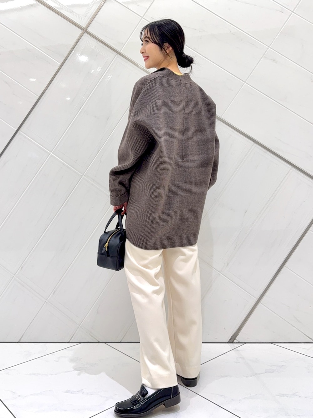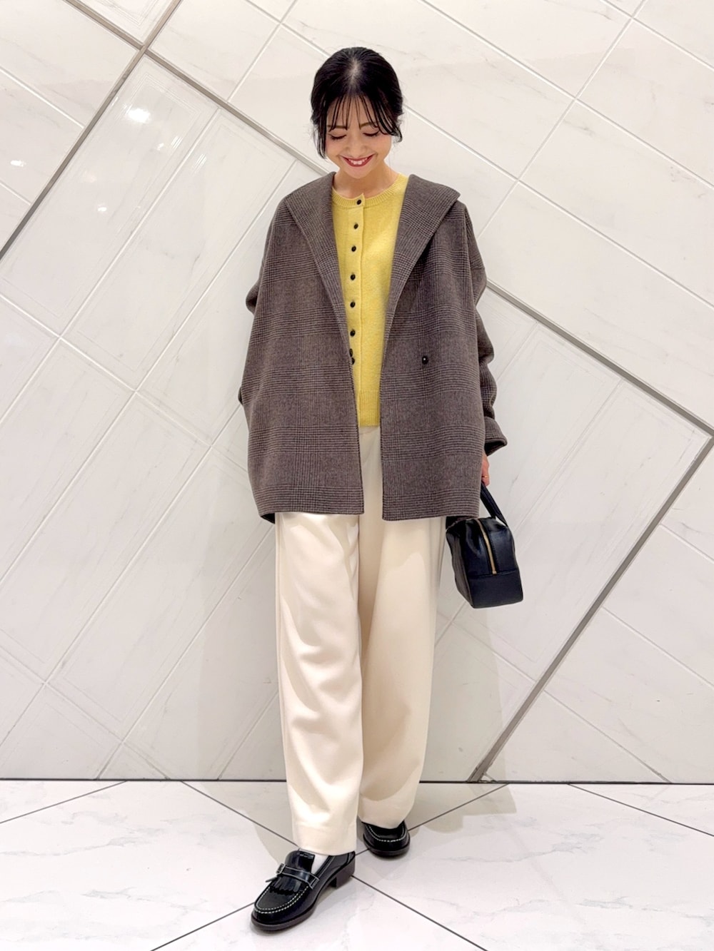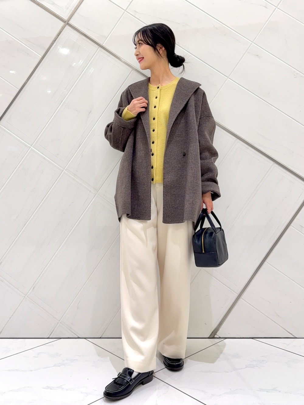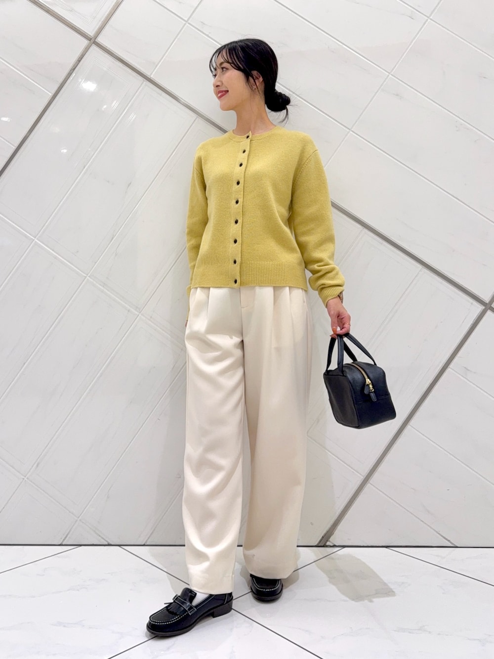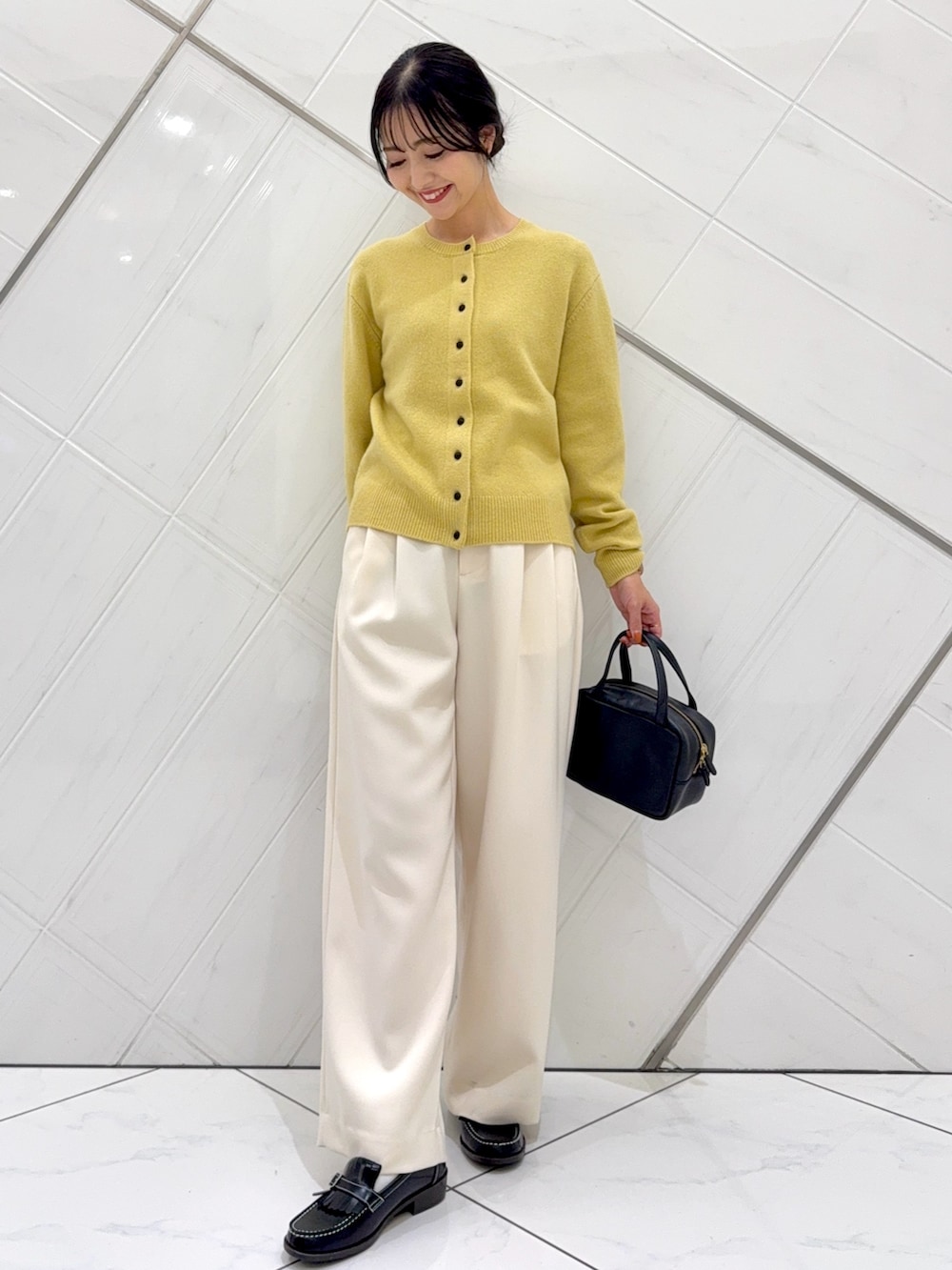 ニットはボタンが可愛らしく、コンパクトなシルエットなのでボトムスを選ばず着回ししやすいです。