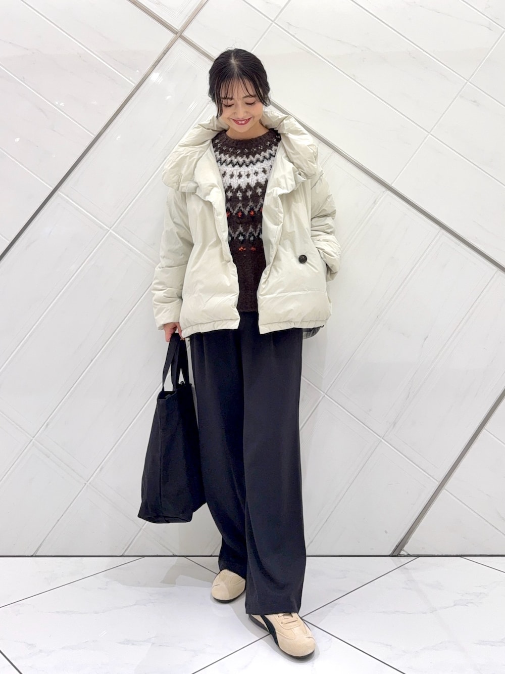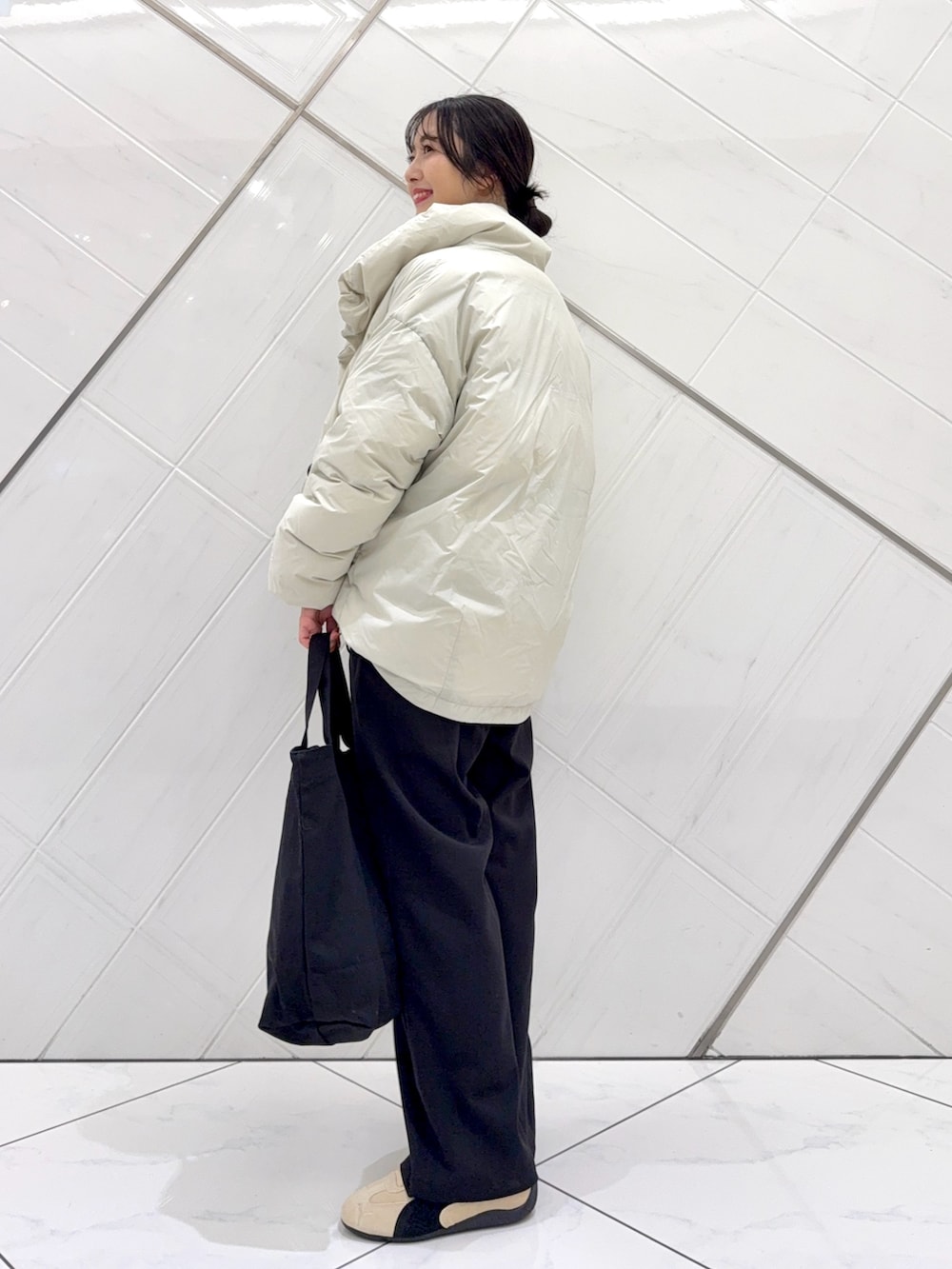 ダウンは羽織ると襟が大きめで小顔効果もあり、ボタンを閉めるとスタンドカラーになるので首元もしっかり暖かいです。