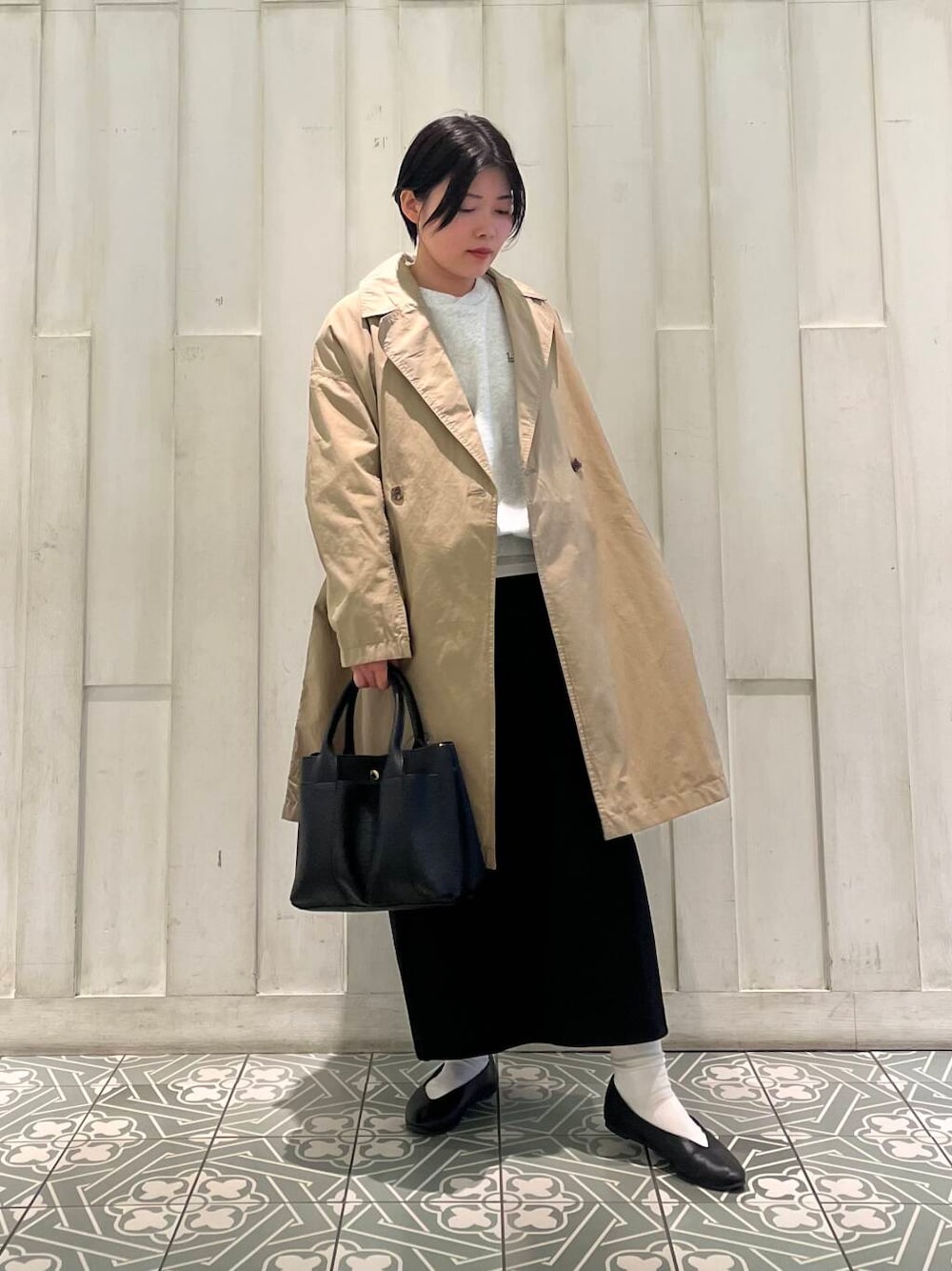 丁度いい丈感のコートで、低身長の方も合わせやすいです◎