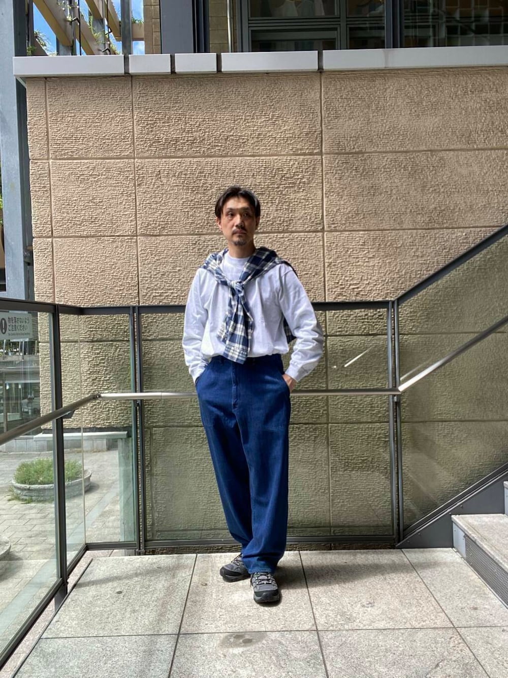 センタープレスを入れることでカジュアルなアイテムだけでなくキレイめなアイテムとの相性も抜群です。