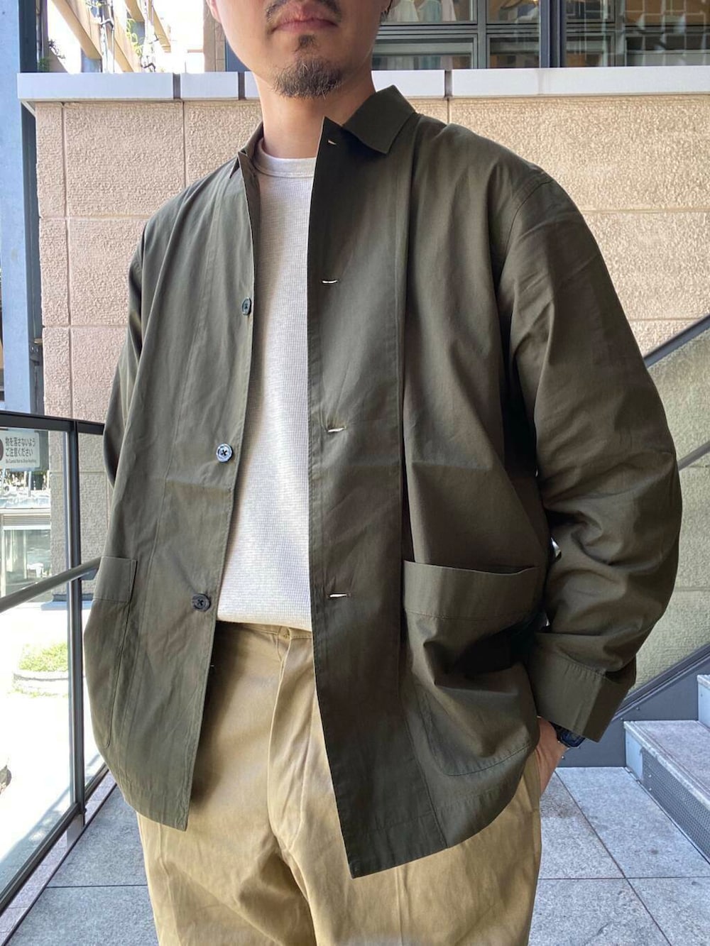 通常しっかりとしたデニムやかつらぎなどを使用するカバーオールですが、シャツ地にすることで着用時期も長く重宝する一枚が完成。