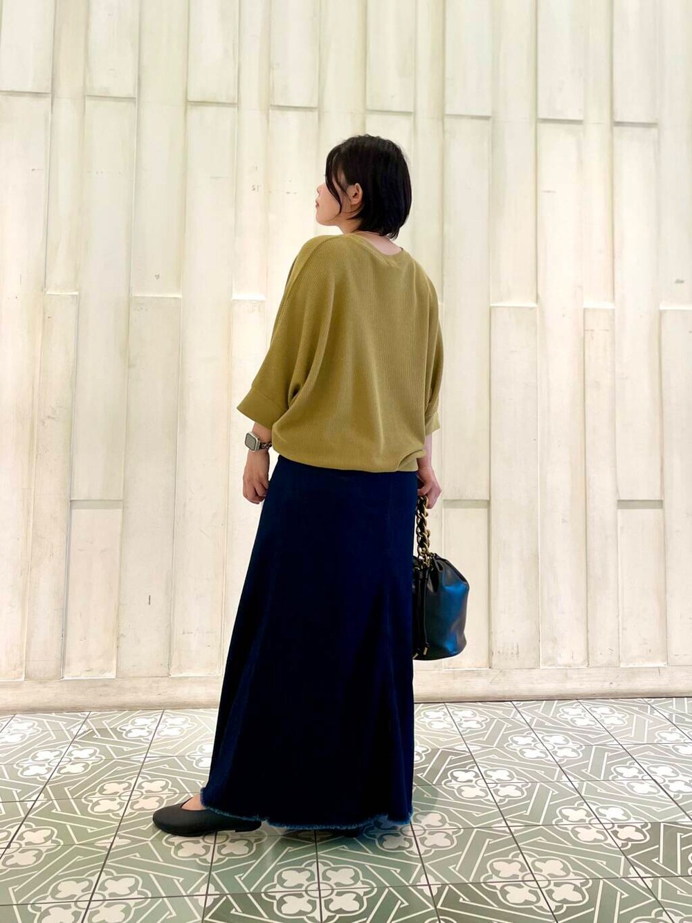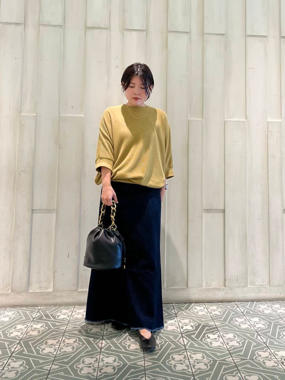 デニムのスカートは、着丈長めでかわいいです!ハイウェストにはなりますが低身長の方もギリギリ履けます!