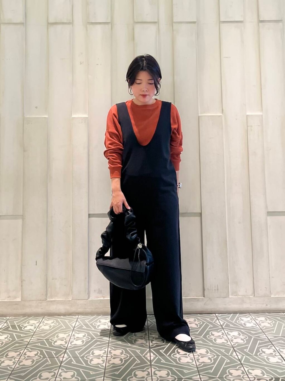 サロペットは、Uネックのデザインがかわいく、腰回りはゆったりしていて着丈は長めです!低身長の方は丈上げ必須です!