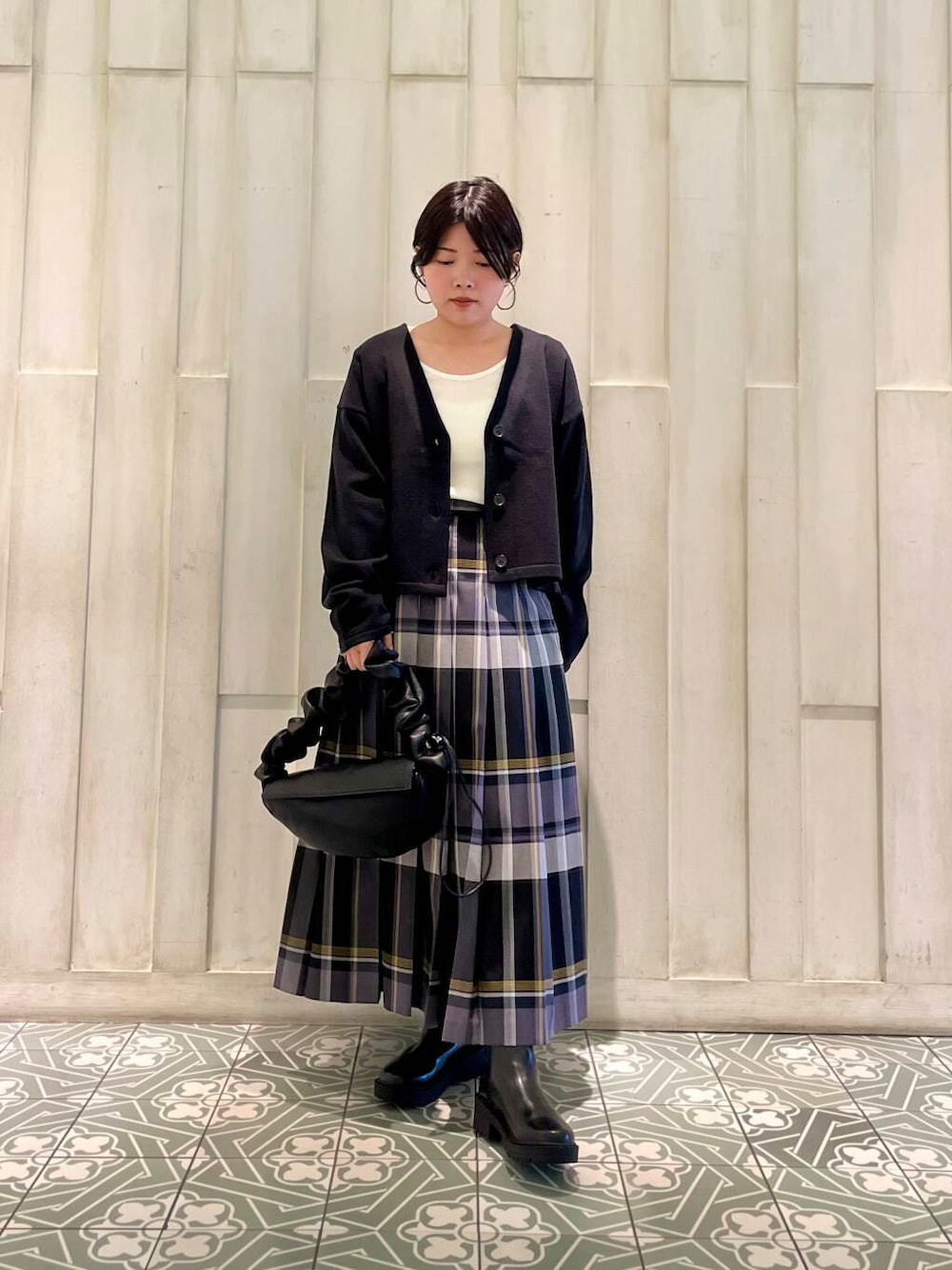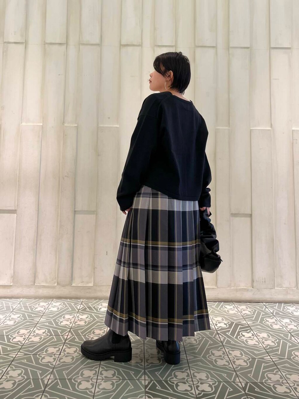 スカートは、落ち着いたカラーのチェックならなので取り入れやすいです◎