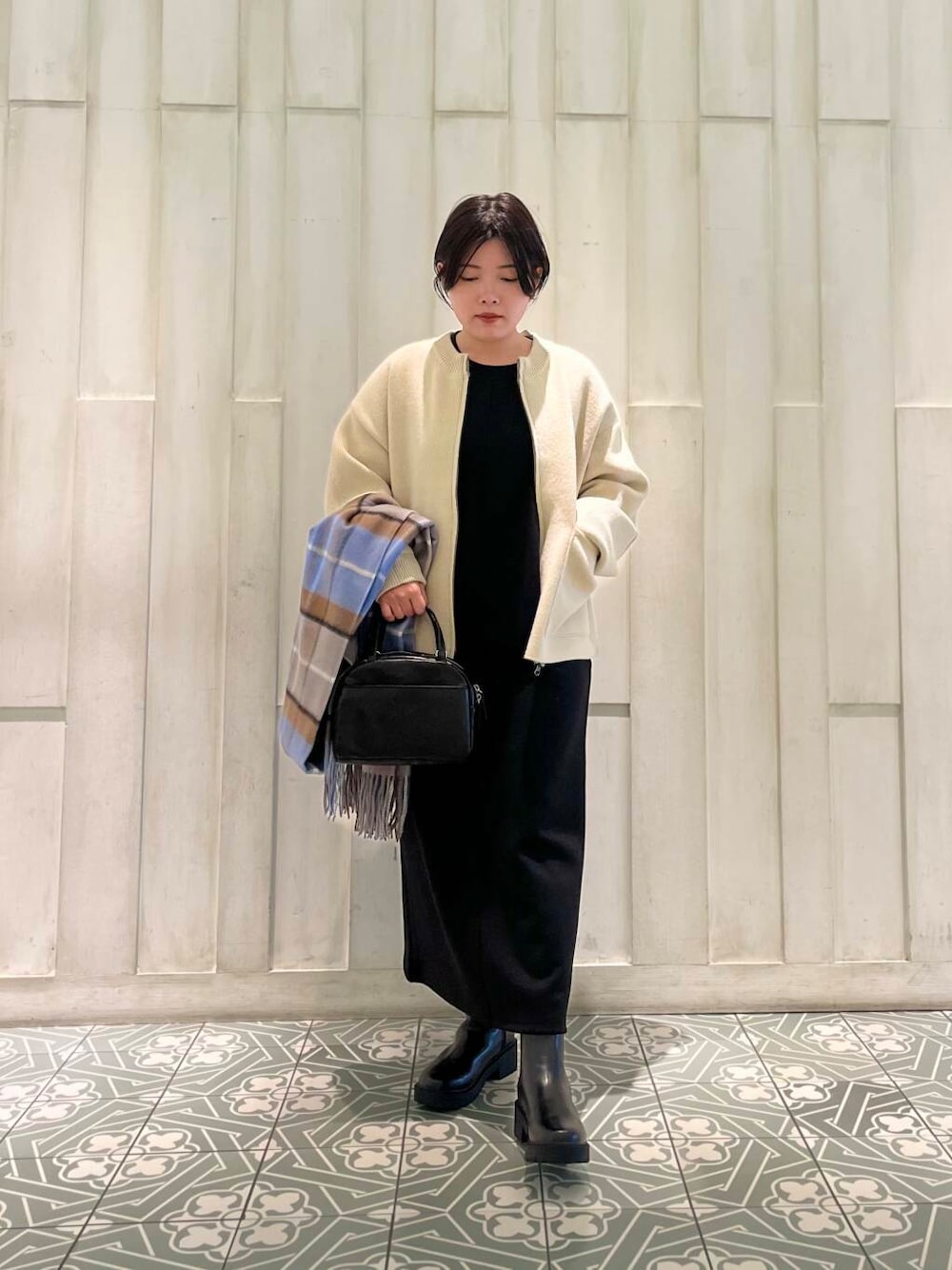 ワンピースは、袖と身頃で生地感が違っていてシンプルですがメリハリのあるデザインです!