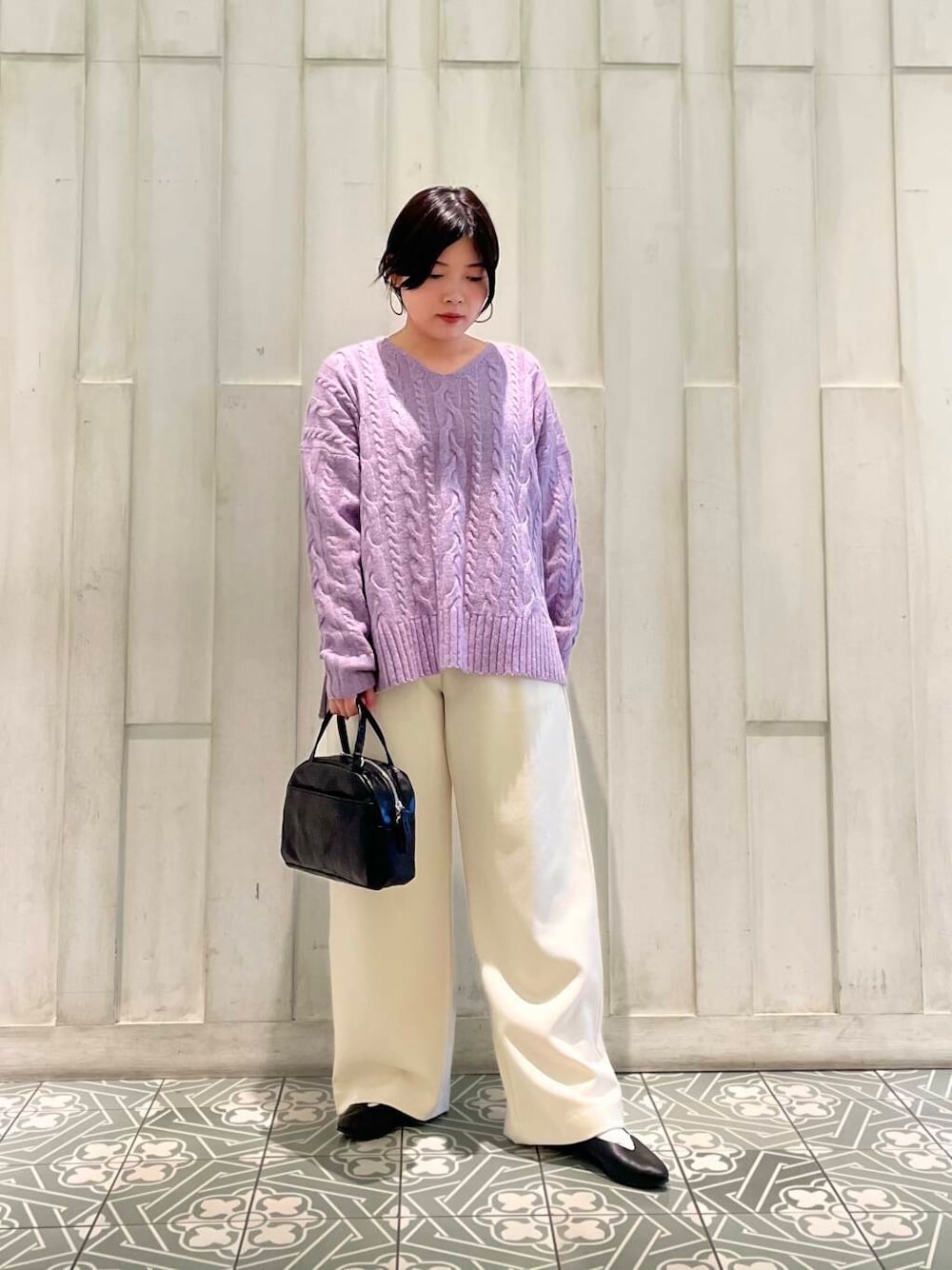 ゆったりしてますがVネックでスッキリ見せてくれます◎