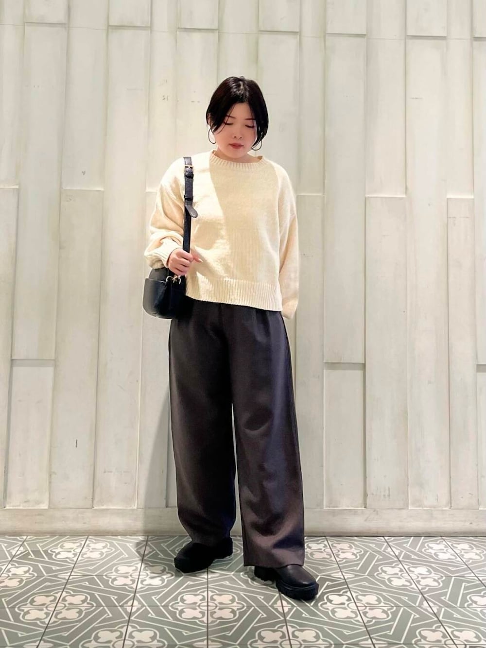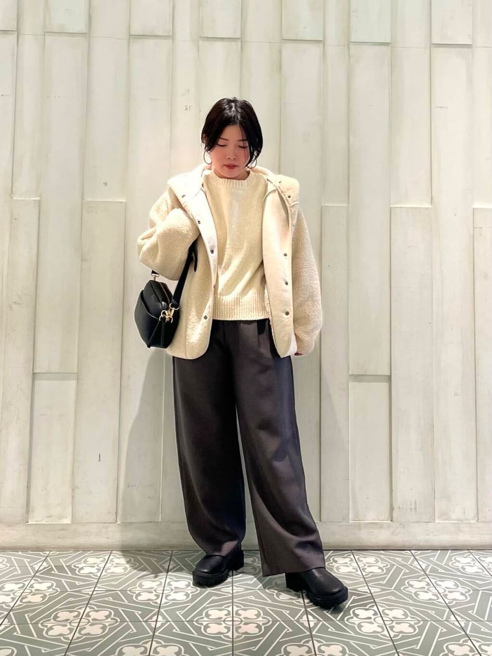 ショート丈なのでスカートやワイドパンツにも合わせやすいです!