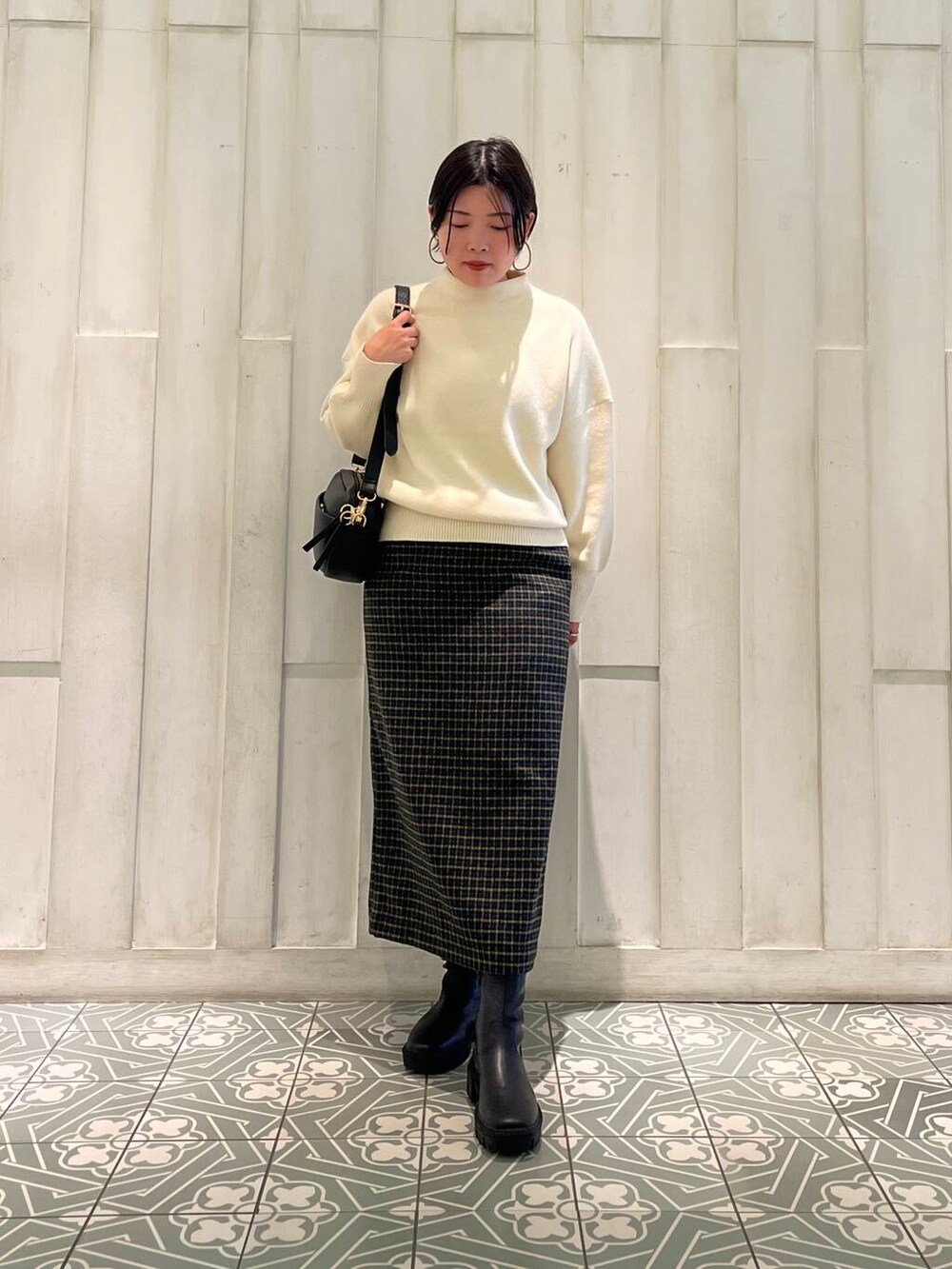 コンパクトなニットなので、スカートやワイドパンツとバランスよく着れます◎