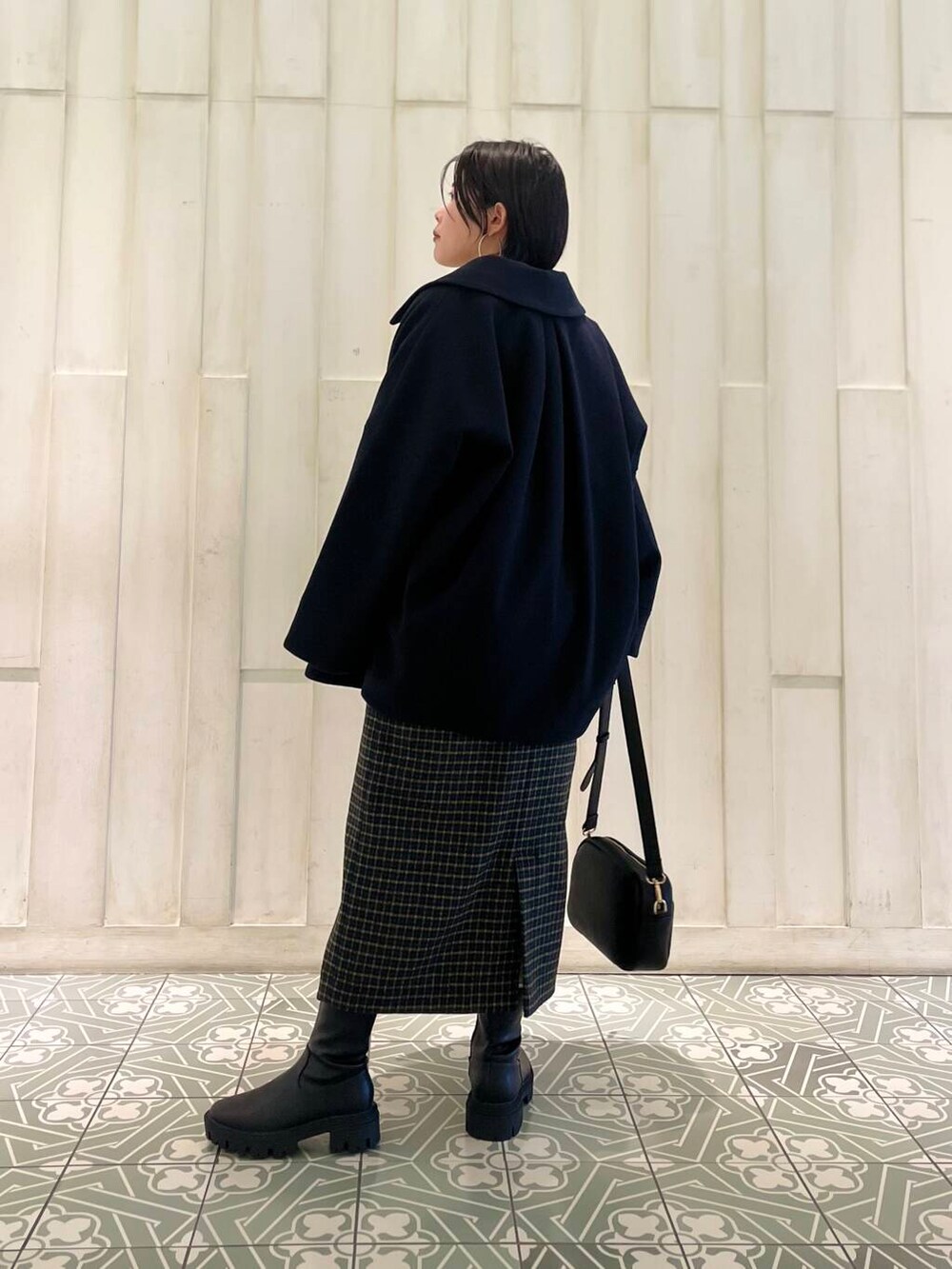 コクーン型のコートで後ろがふんわり丸いシルエットになっています!