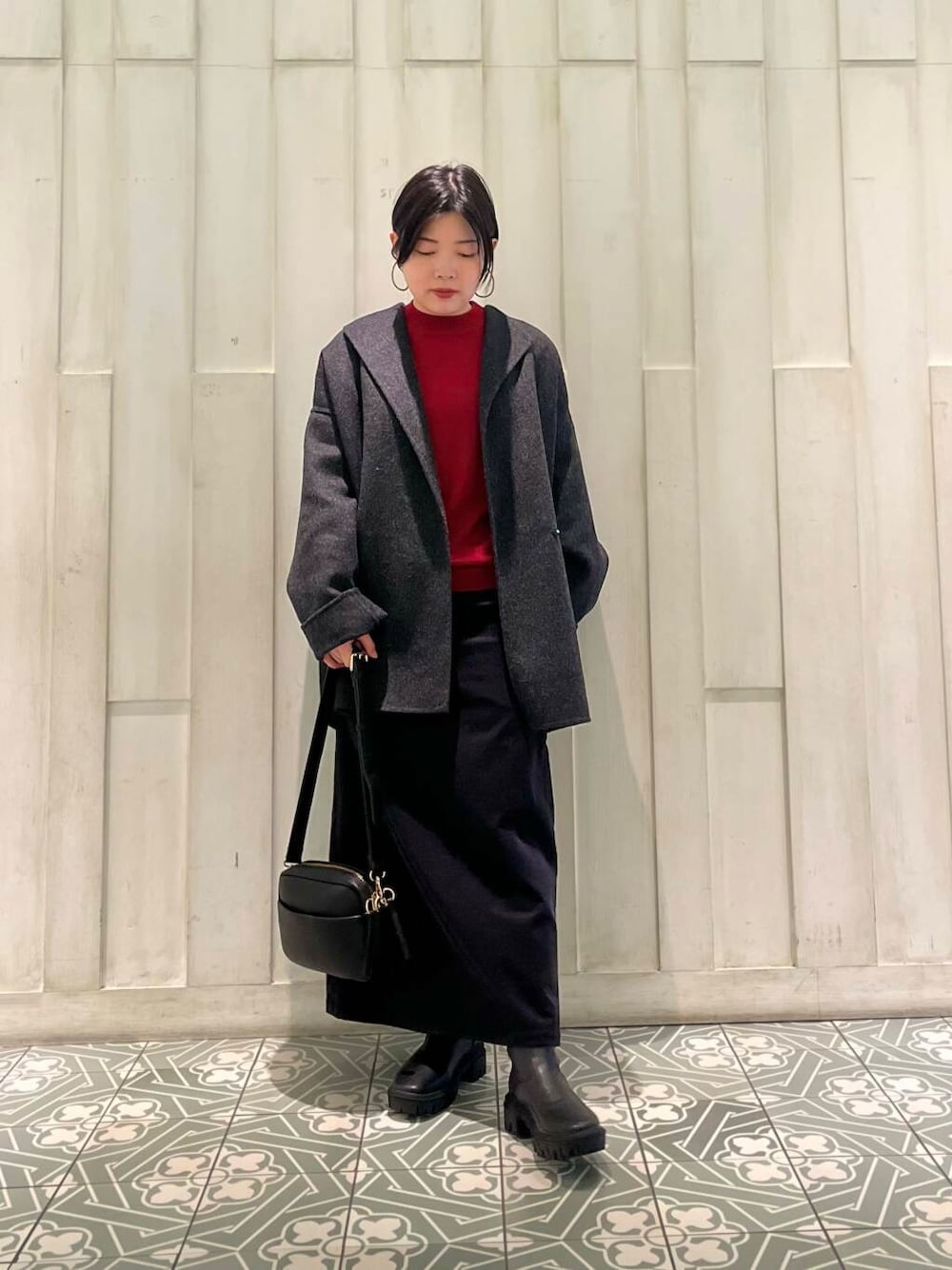 厚めのニットやインナーダウンも着れるゆとりがあります◎