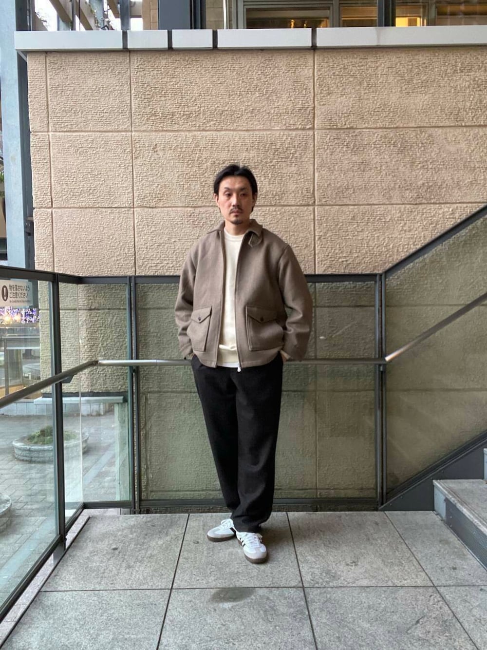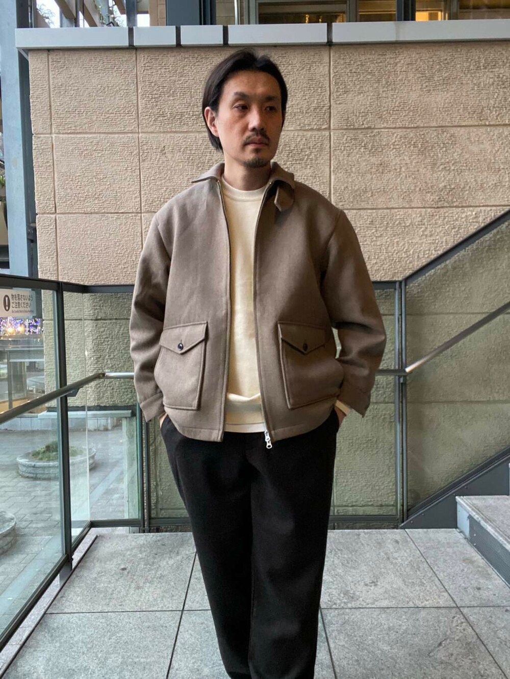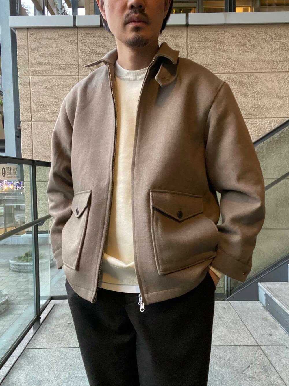 ウールのふくらみと温かみのあるメルトン生地を使用したハリントンジャケット。