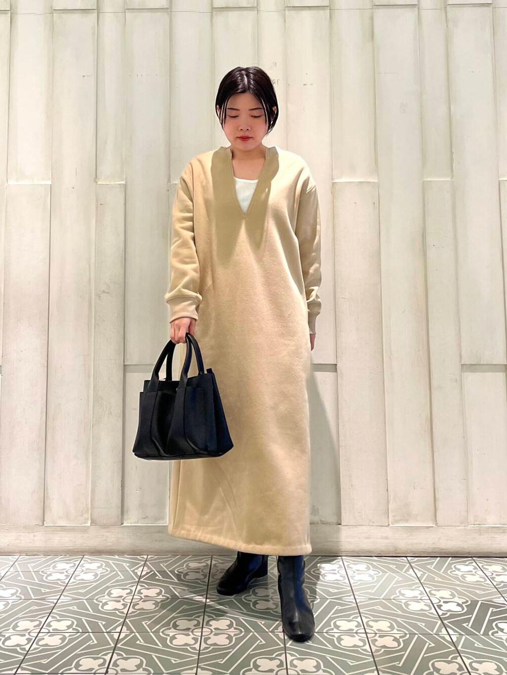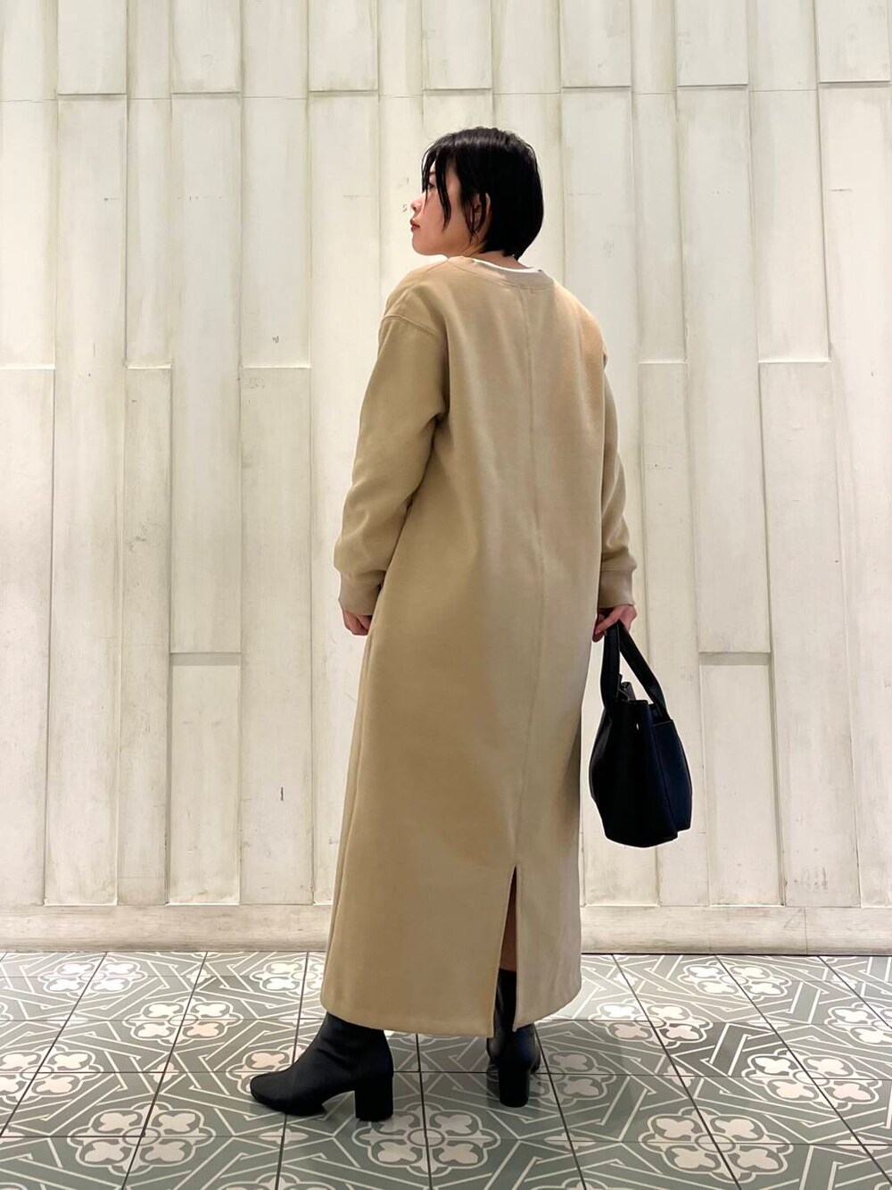 スウェットでカジュアル感のあるワンピースですが、Vネックでスッキリと女性らしいデザインになっています!
