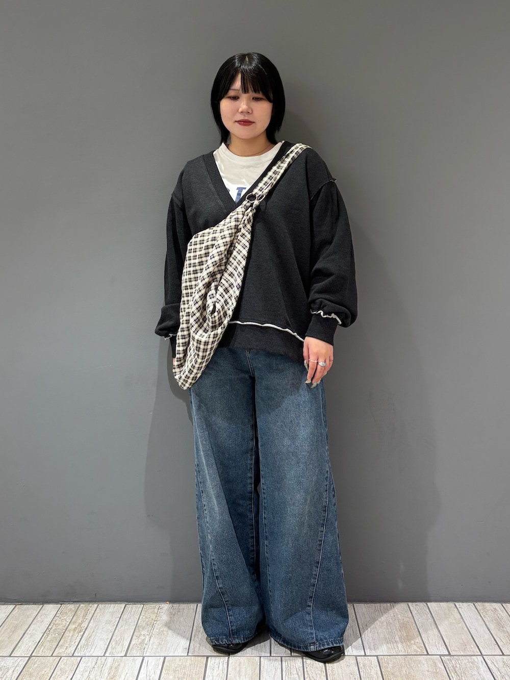 ・骨格ストレートさんはオーバーサイズが苦手ですが、深めのVネックを前に持ってくることで擬似的に縦ラインを作って着膨れしないように.ᐟ.ᐟ.ᐟ