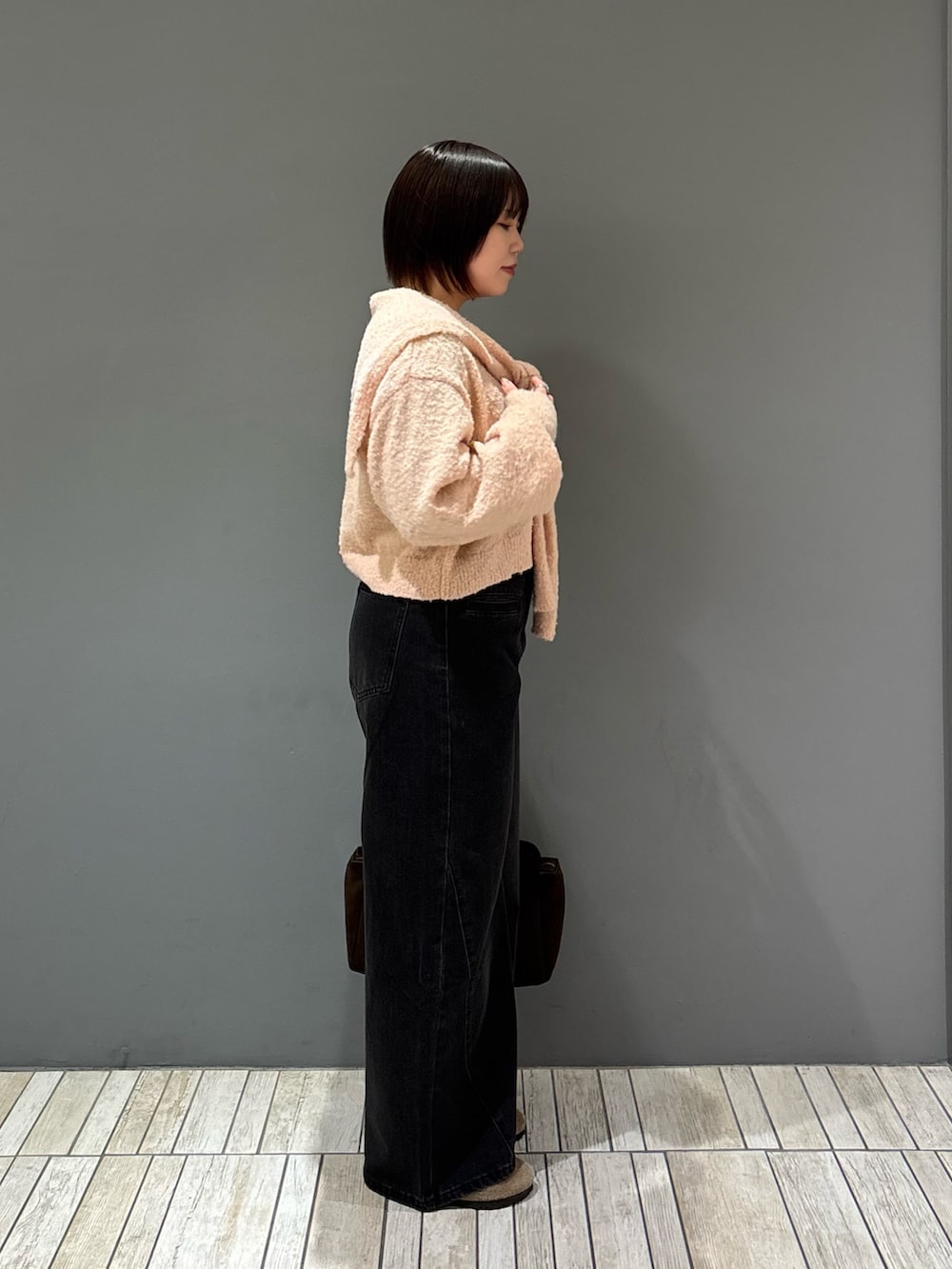 ・パステルピンクにブラック合わせで甘さ抑えめの大人コーデに.ᐟ.ᐟ.ᐟ