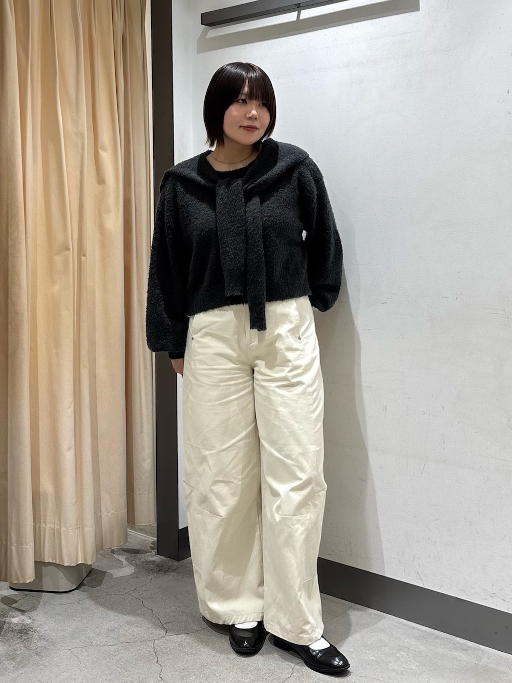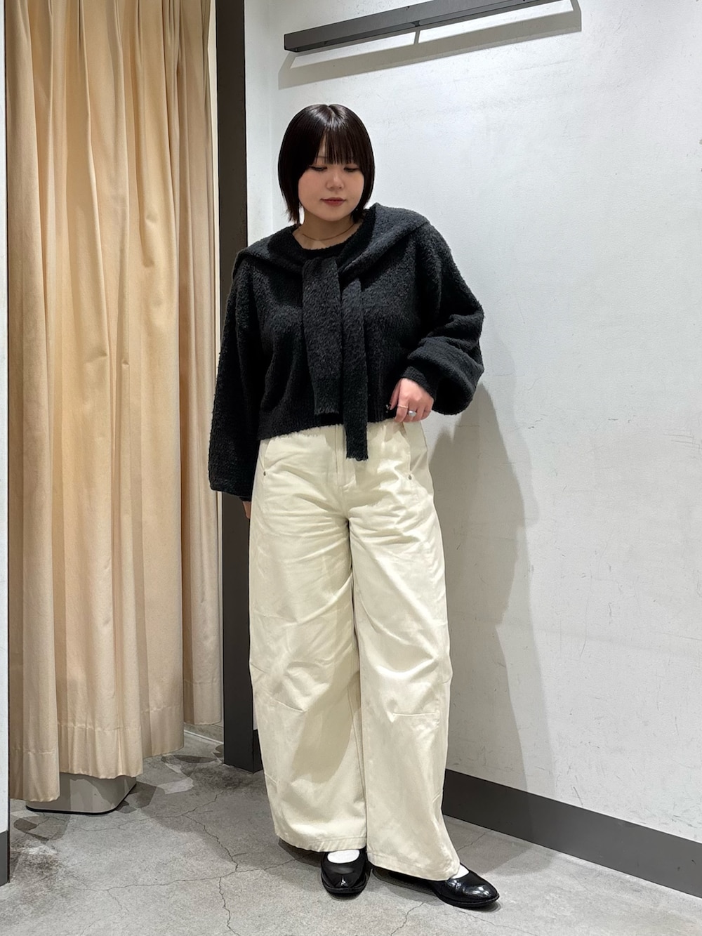 私はあまりコクーンシルエットは履かないのですが、試着してみてシルエットのキレイさにびっくり₍ᐢ ɞ̴̶̷.̮ɞ̴̶̷ ᐢ₎✨ワイドなシルエットなので脚のラインを拾わずスタイルアップしちゃいます!!ワンサイズですが154cmの私でも丈感は問題無く着用でき、ウエストは下腹が若干きついですが入ったもん勝ちなのでIVORYをリアルバイです🛒