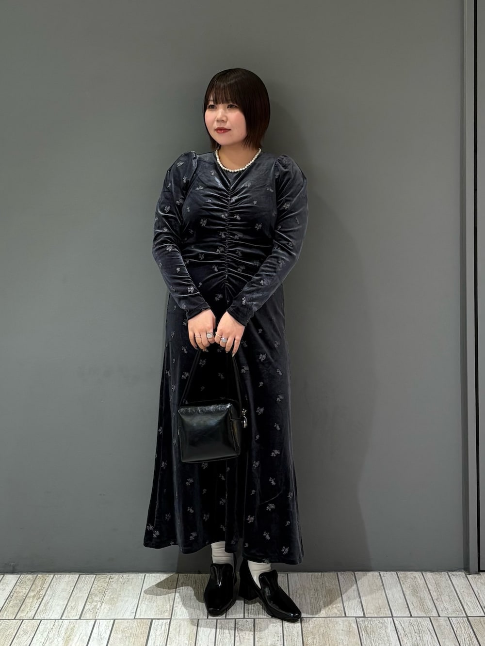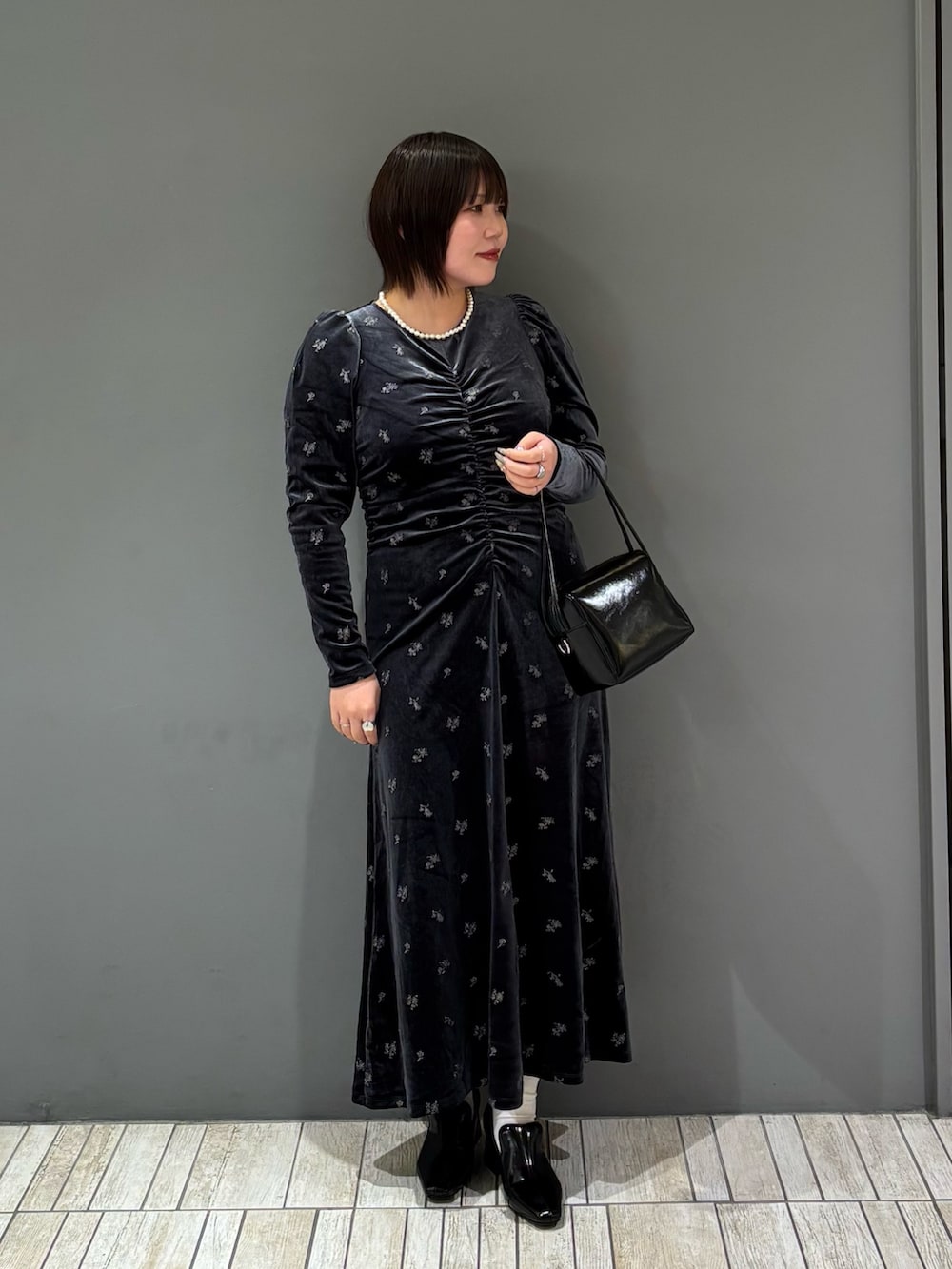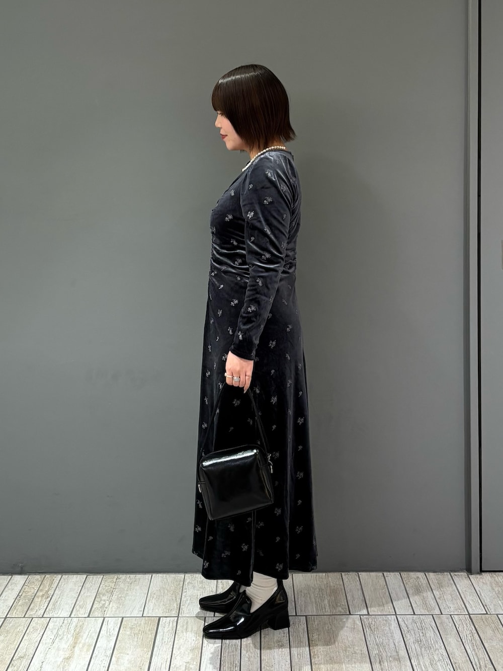 両サイドと胸元に大胆に施されたシャーリングが女性らしさを演出してくれ、ベロア素材でトレンドも取り入れた1着に︎︎𓂃⟡.·