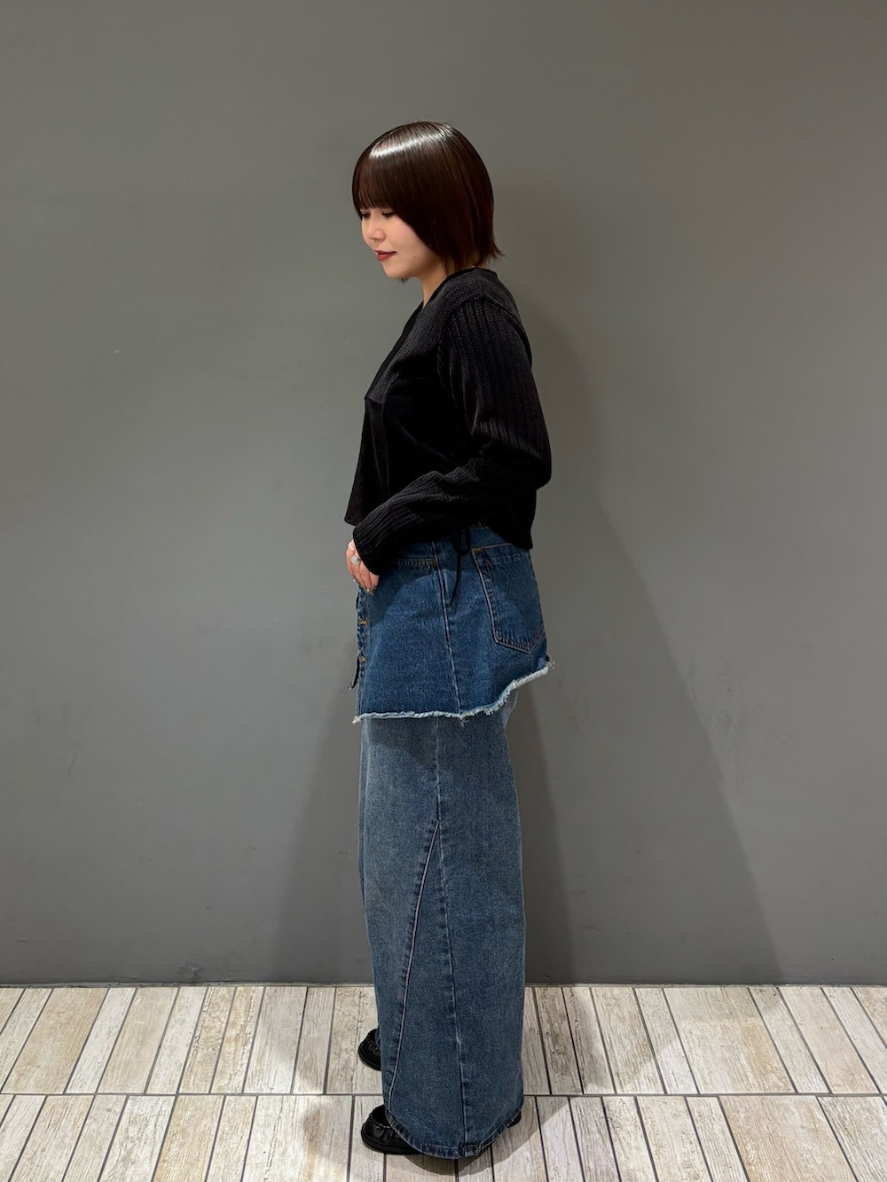 ・デニムのミニスカートをレイヤード!デニムオンデニムでオシャレ見え.ᐟ.ᐟ.ᐟ
