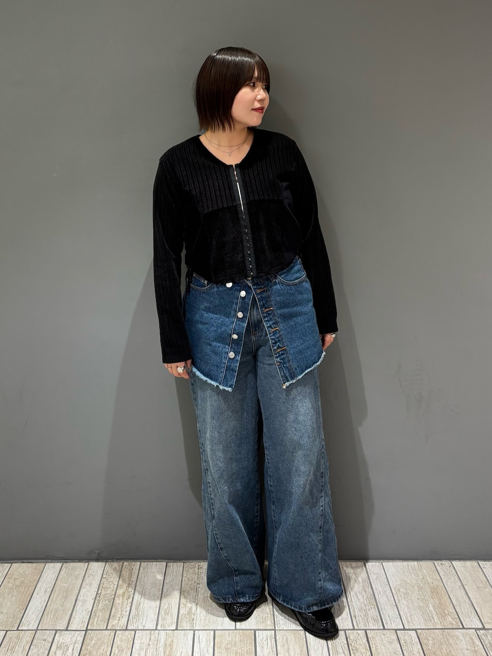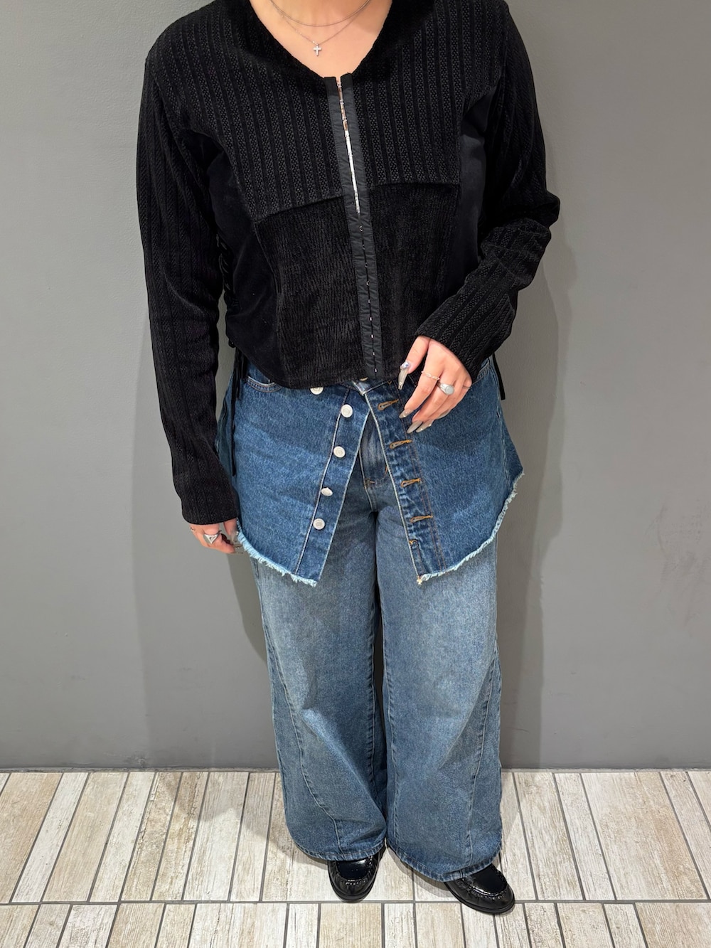 着てみた感じ、ウエストは2段階で調節できるようになっており、デニムの上から巻いてもキツイ💦といったことはなく履けましたよദ്ദി ῀ᢦ῀ )1枚で履くのは少し短すぎるかなと思うので私はパンツの上でレイヤードスタイルを楽しみます!