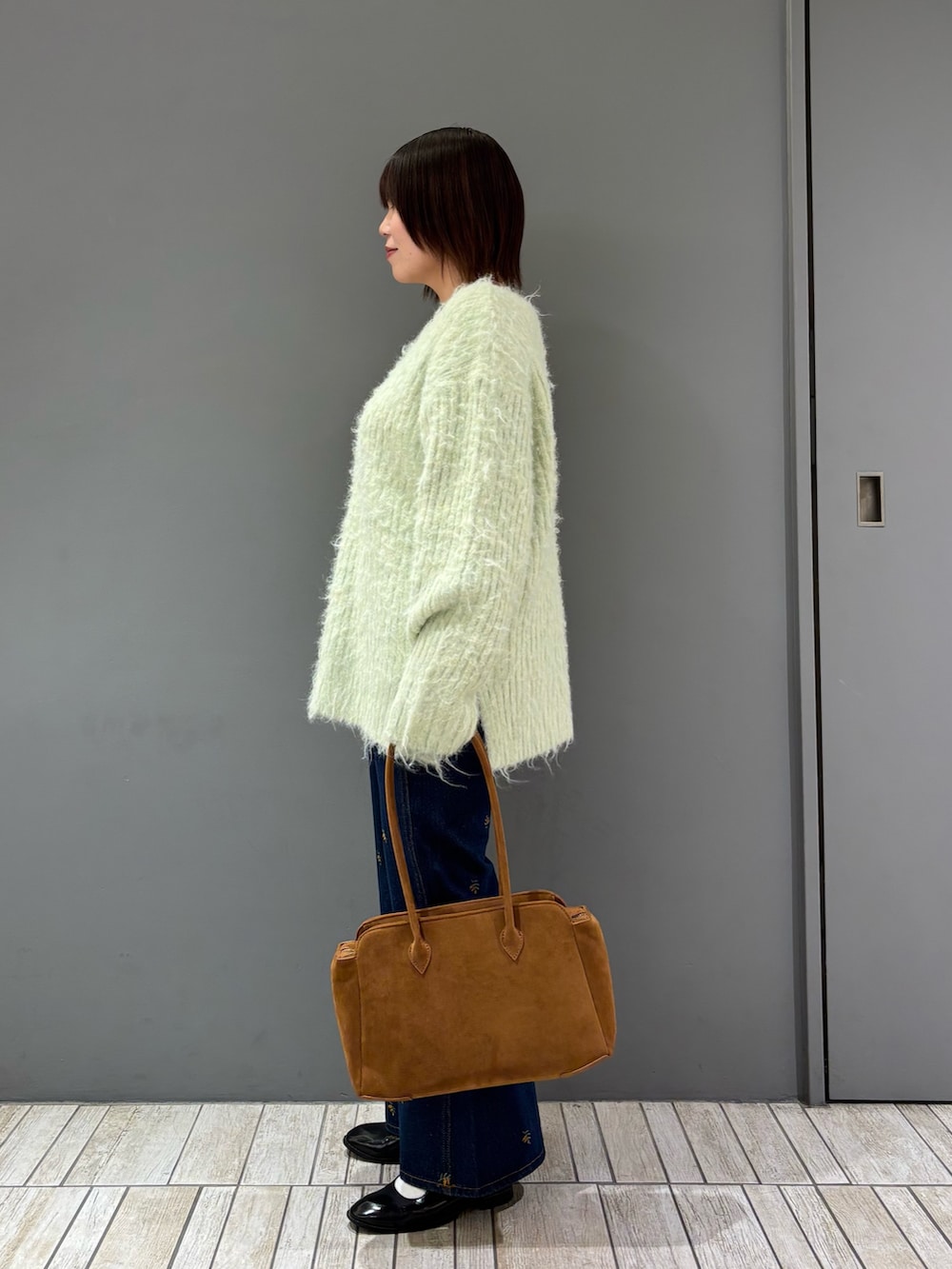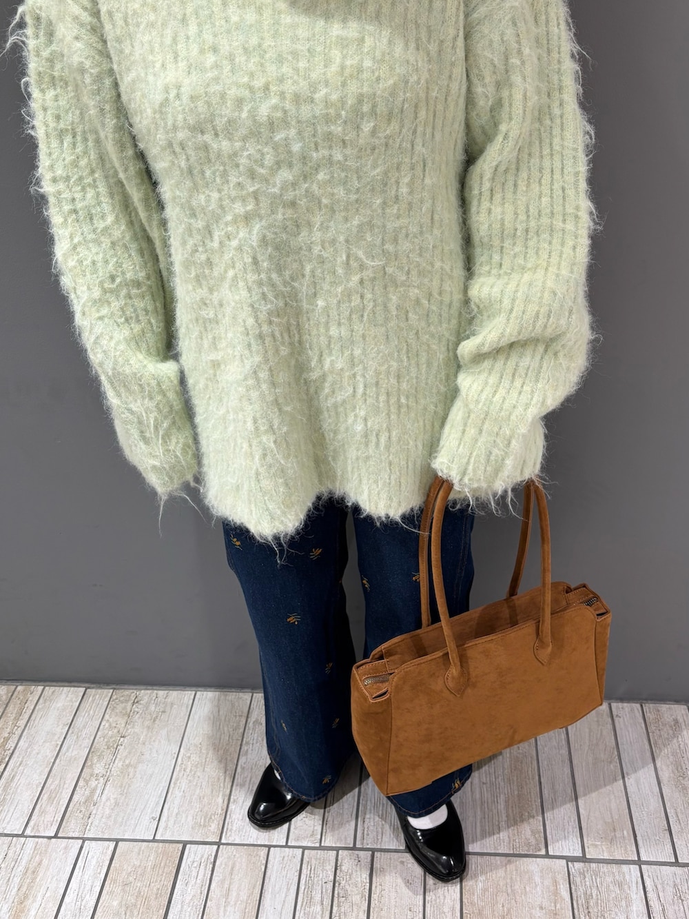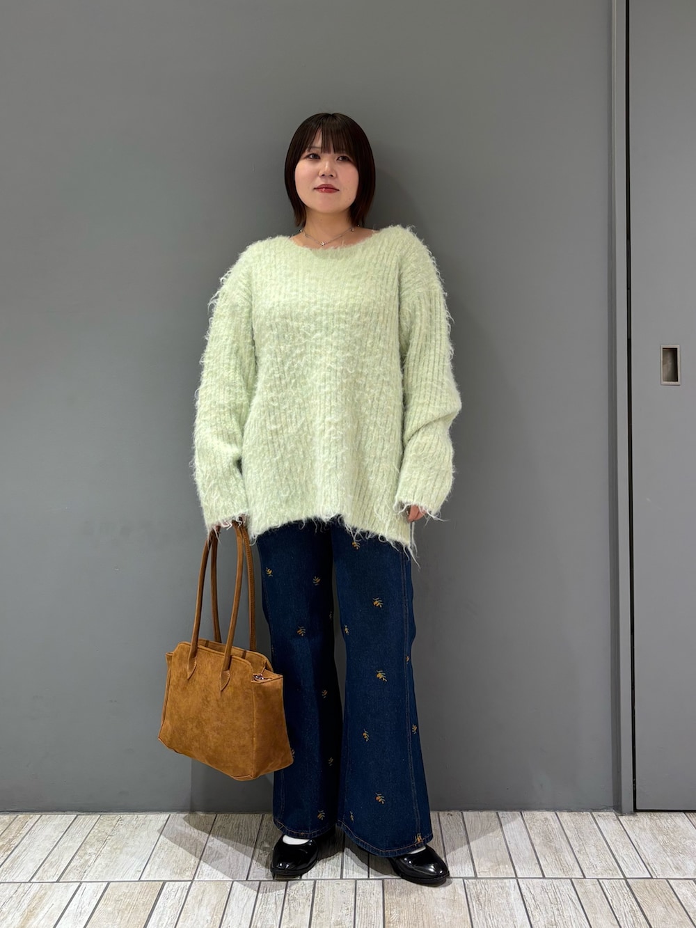 ・オーバーサイズのニットなので、細身のフレアデニムと合わせて全身のバランスを取ってみました.ᐟ.ᐟ.ᐟ