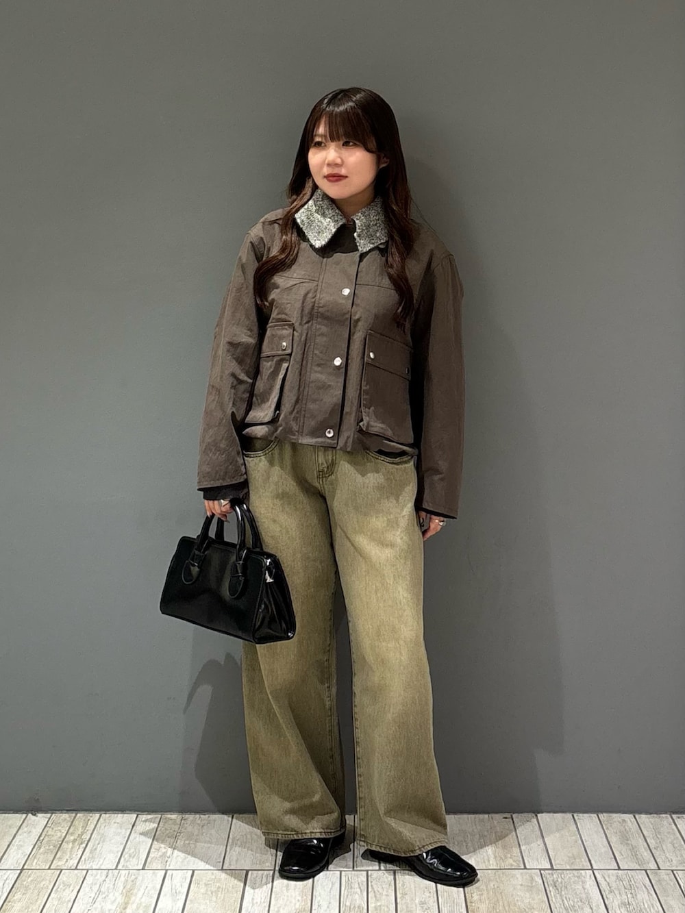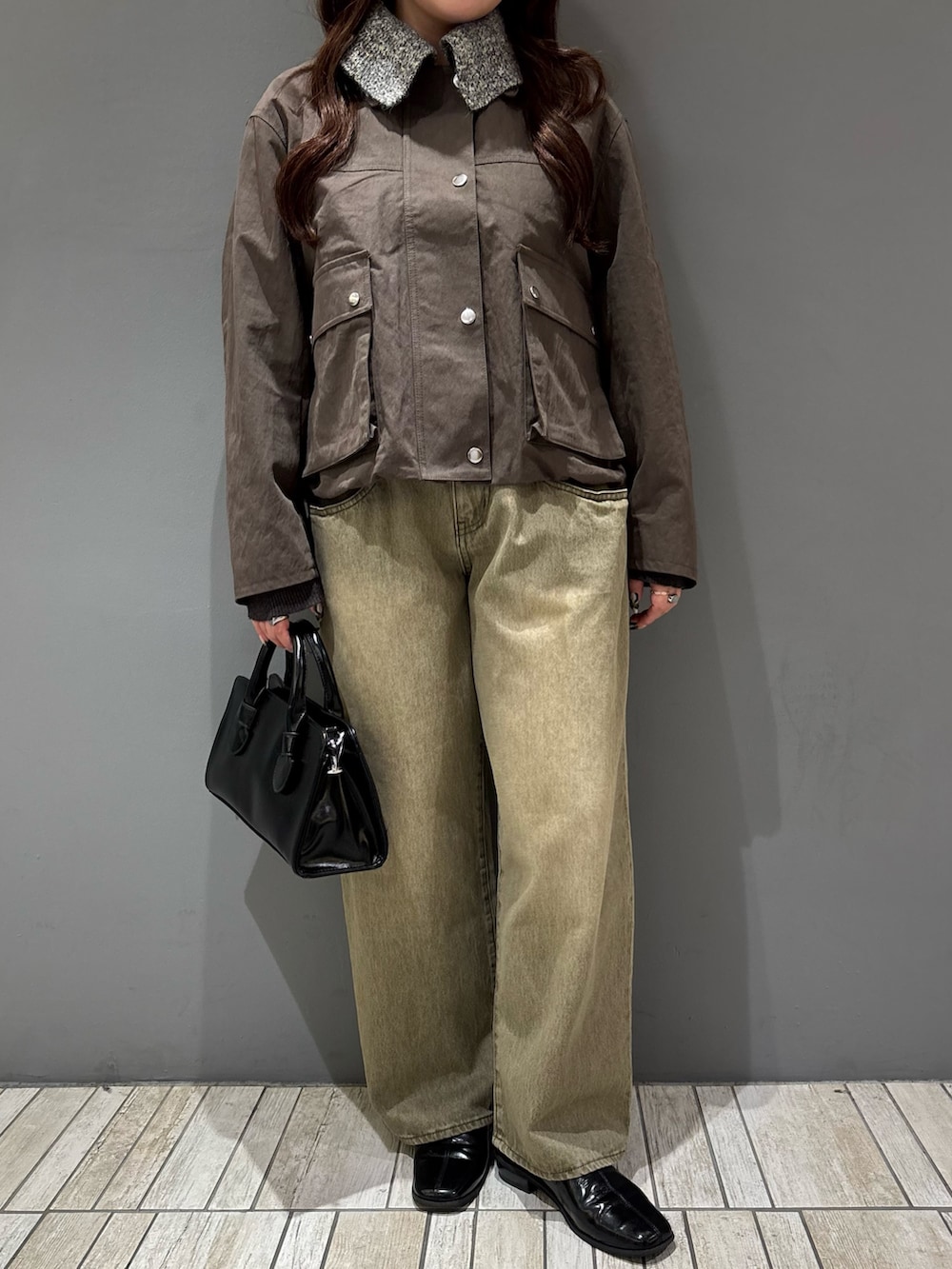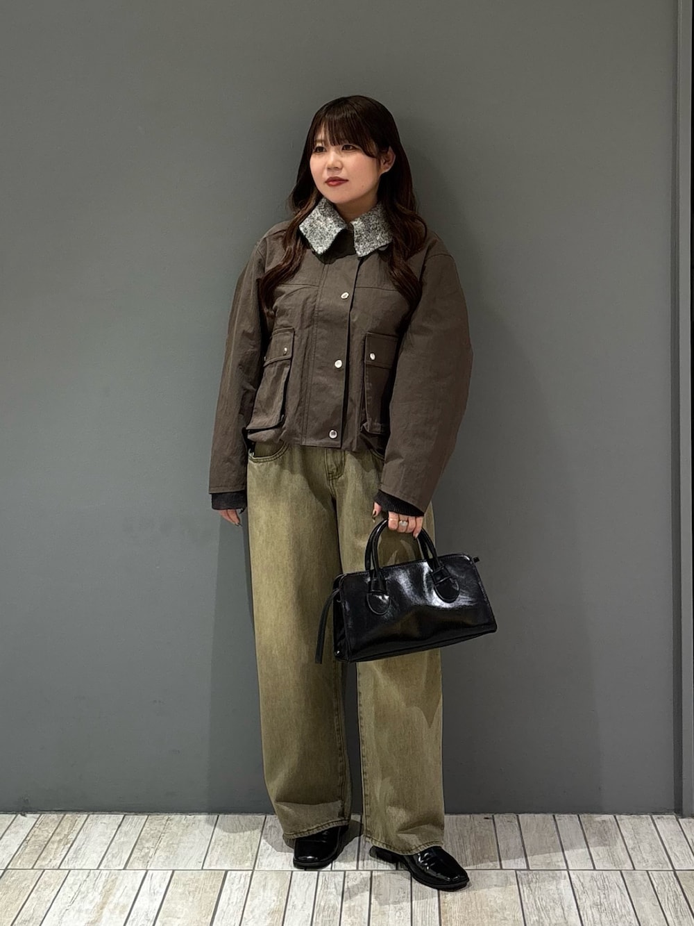 着てみた感じ、サイズ感はジャストサイズより少し大きめな印象ですが、着膨れは問題無く着れました!ボタンを一番上まで閉めても首が詰まらないので骨格ストレートさんにもオススメですɞ̴̶̷ ·̫ ɞ̴̶̷💫