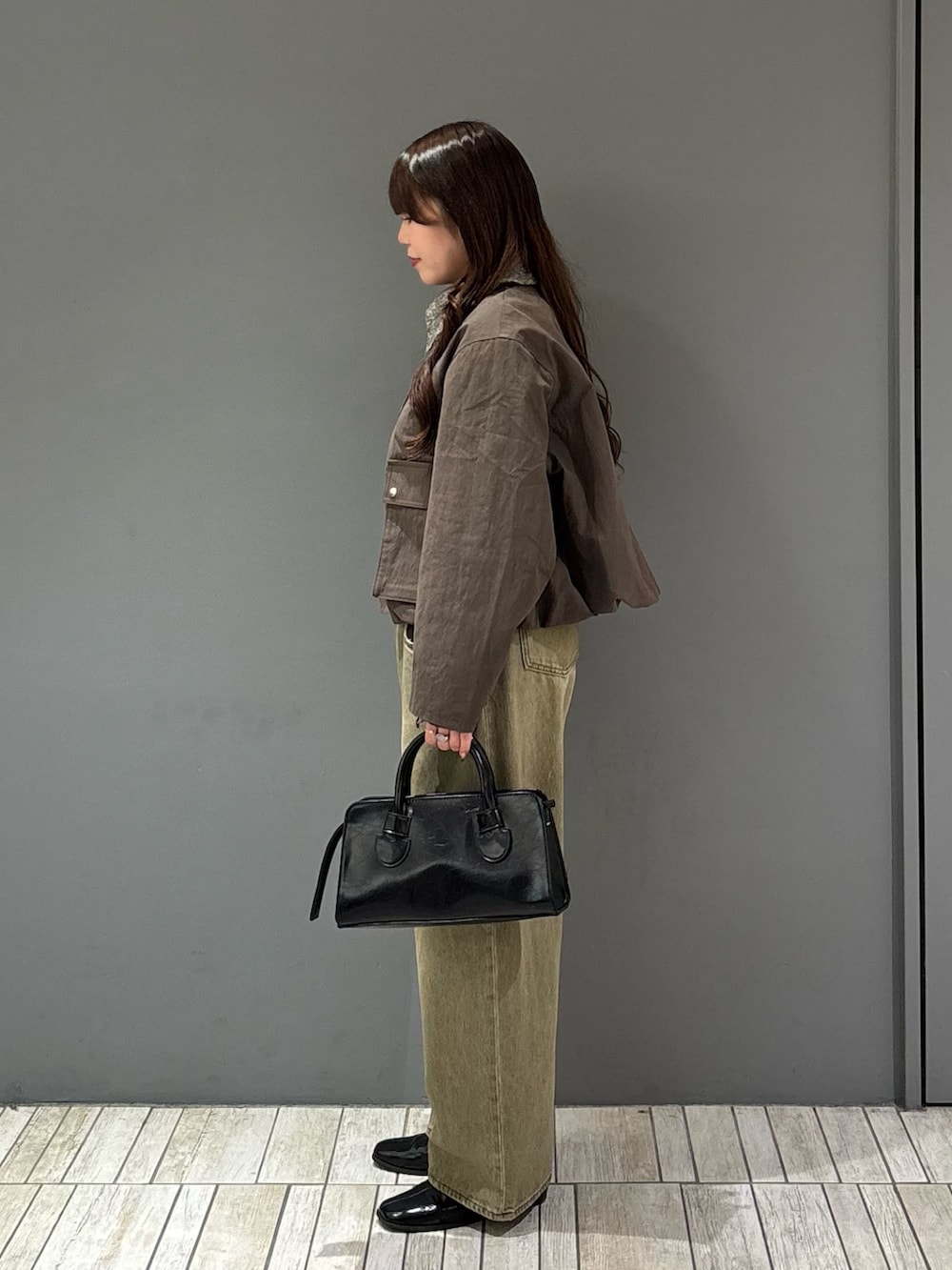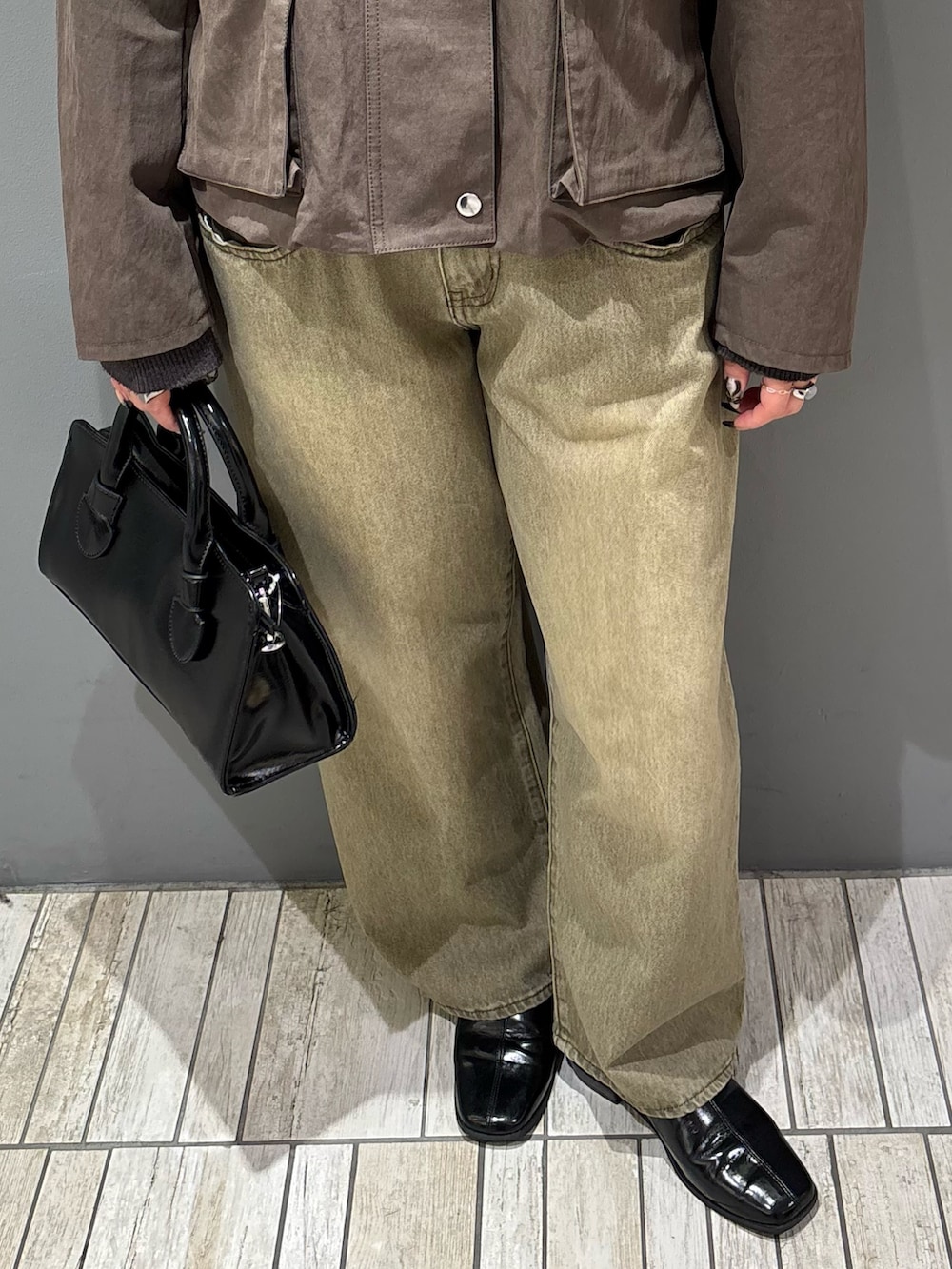 ・全体をカーキ系の同系色で合わせてコーディネートに統一感をプラス.ᐟ.ᐟ.ᐟシューズとバッグは黒にして引き締め効果も.ᐟ.ᐟ.ᐟ