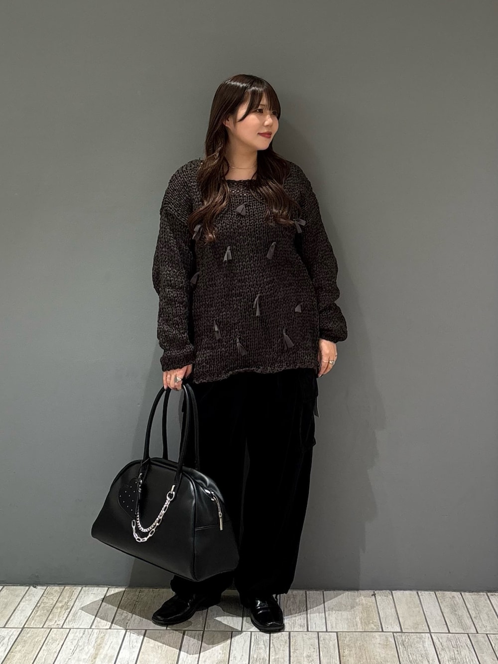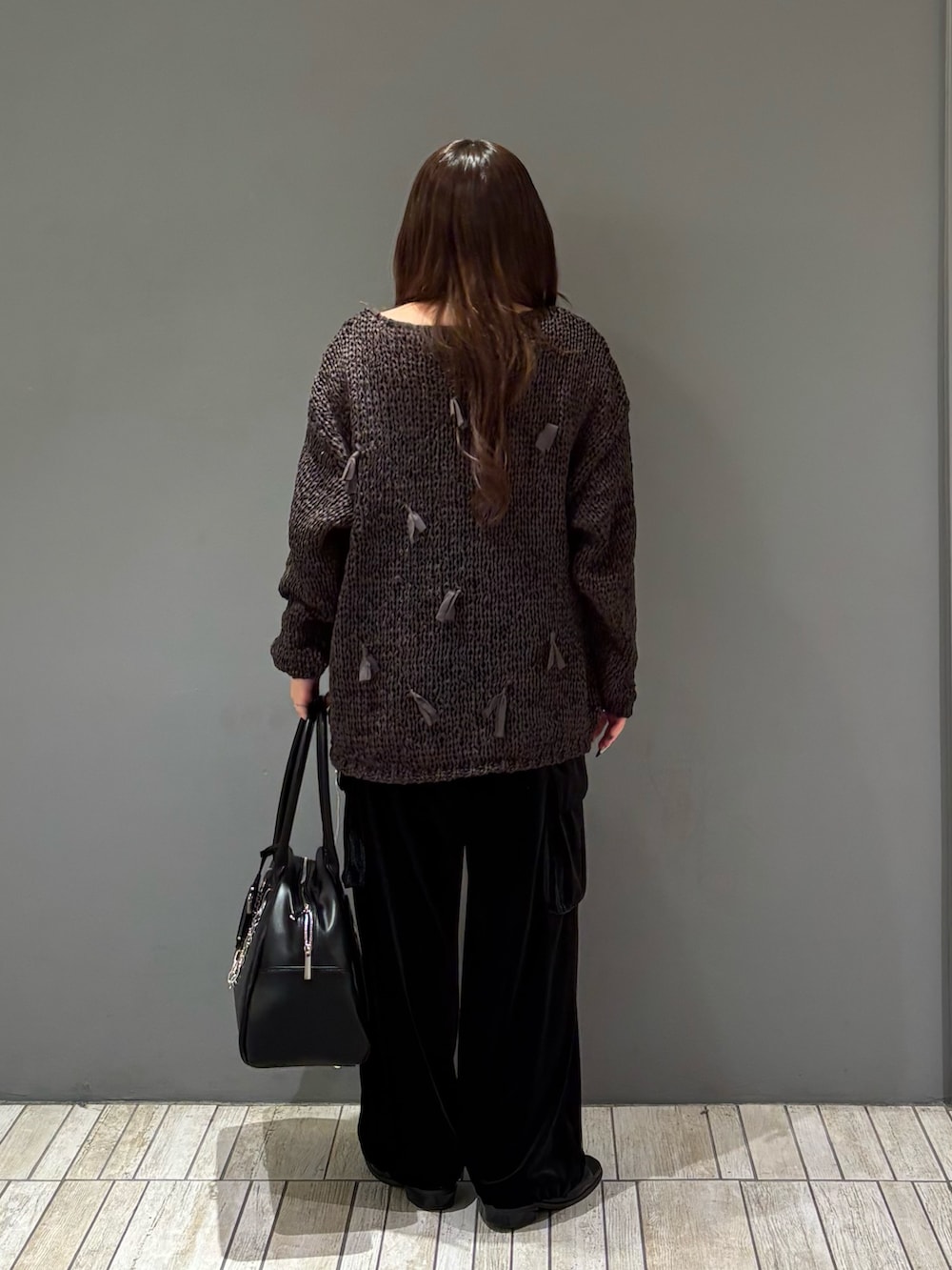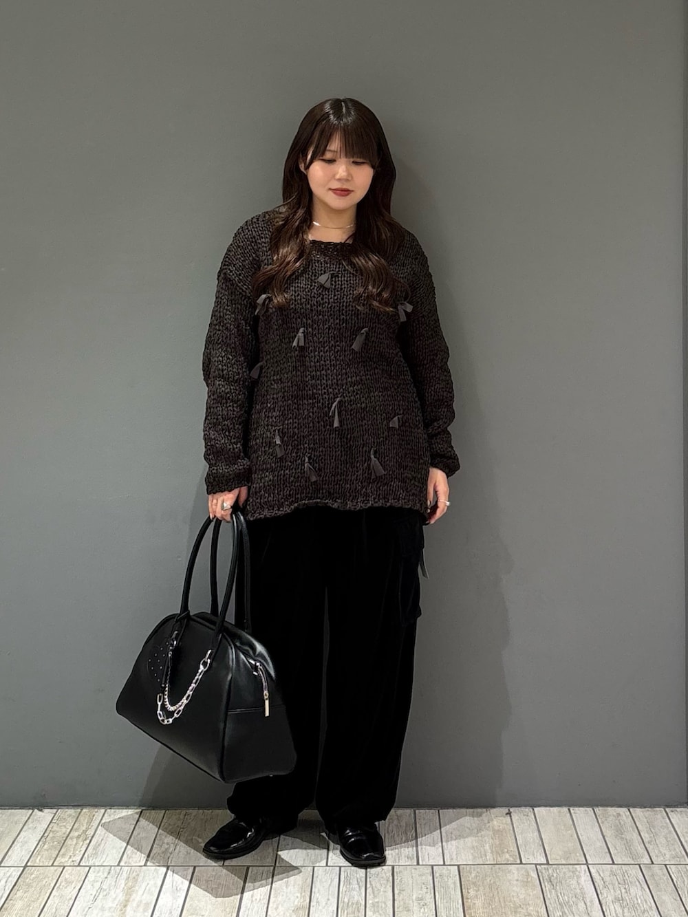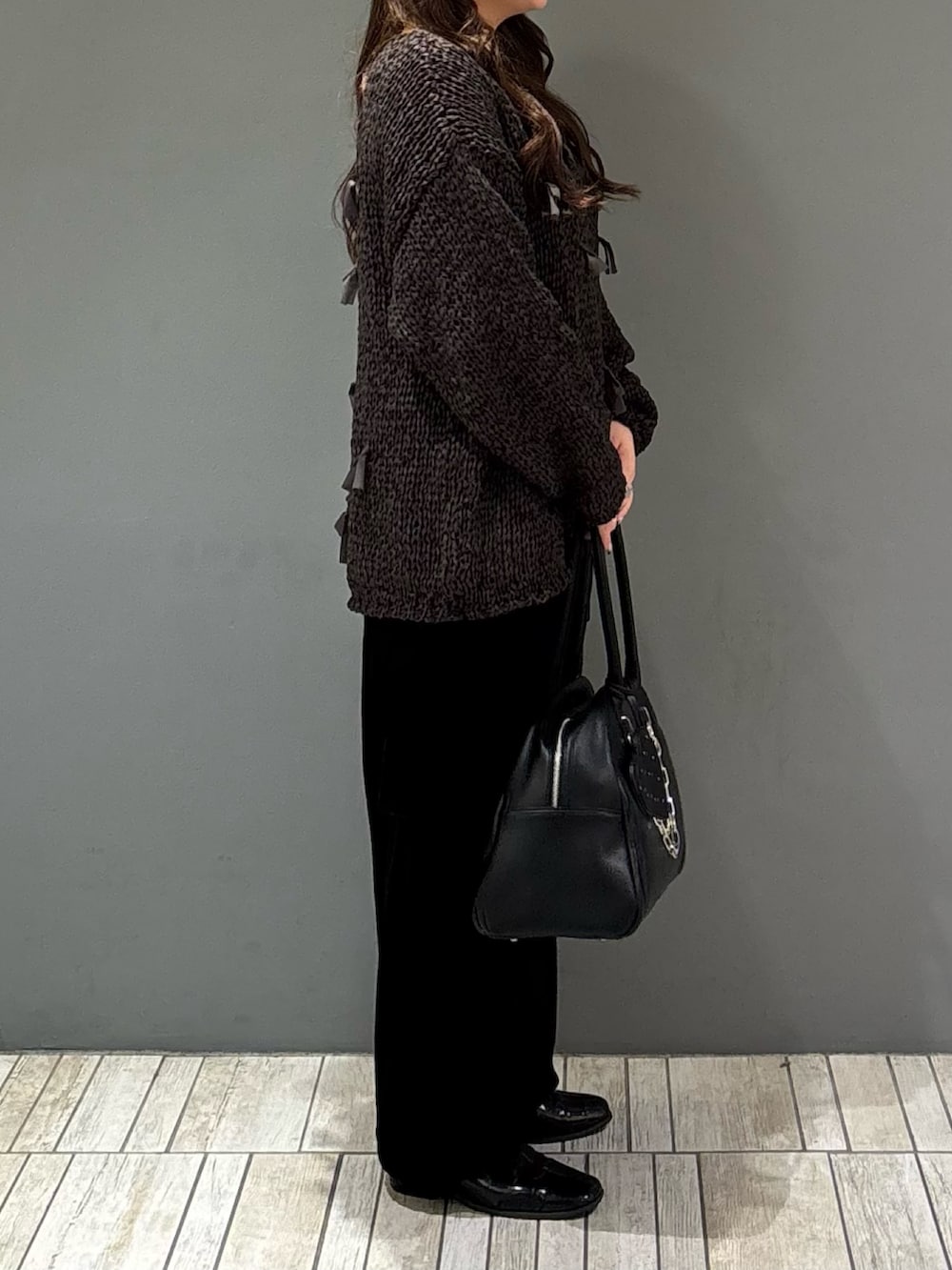 ・オーバーサイズなニットにはストンと落ちるベロアパンツで全身のバランスを調節.ᐟ.ᐟ.ᐟ