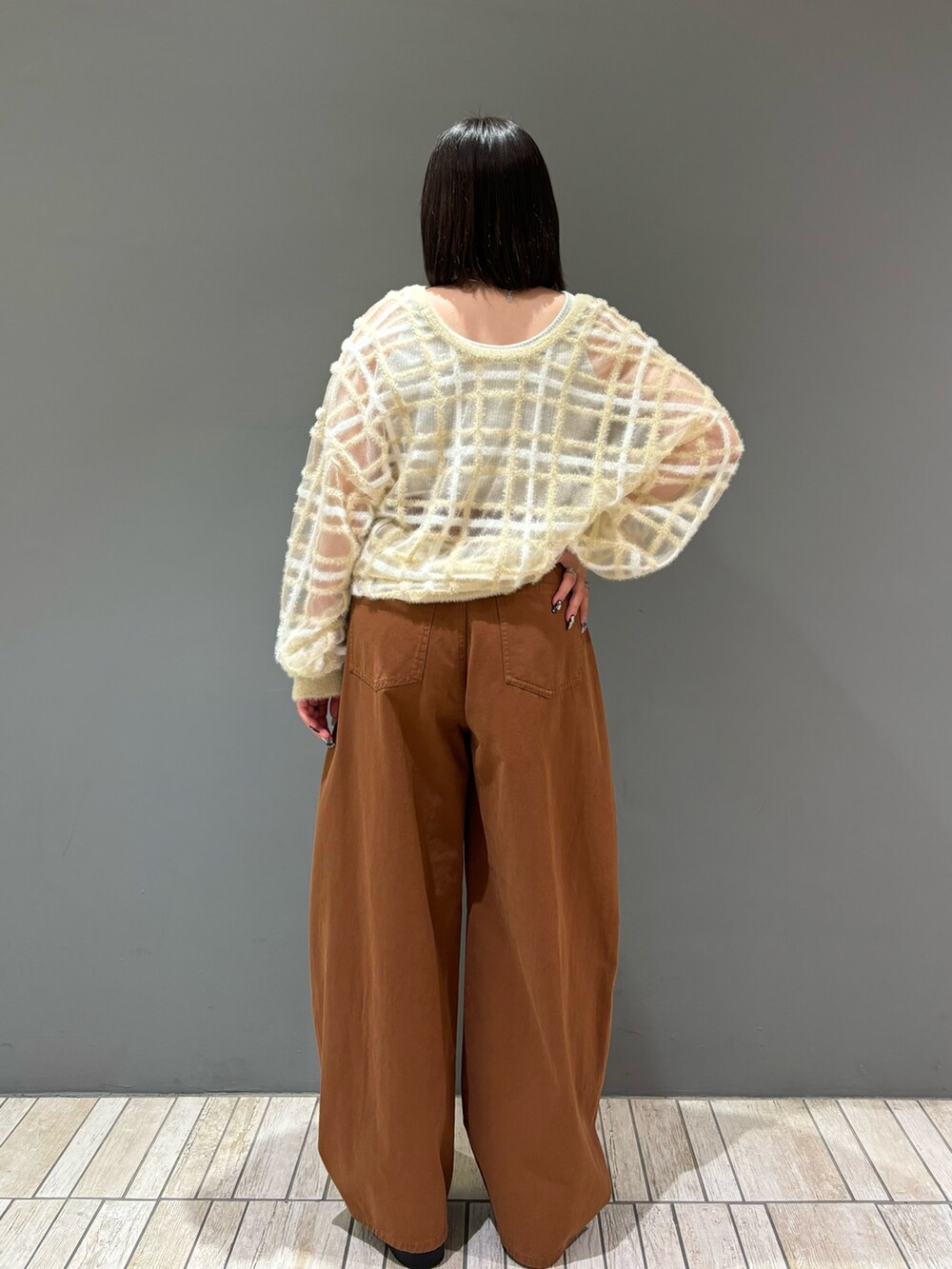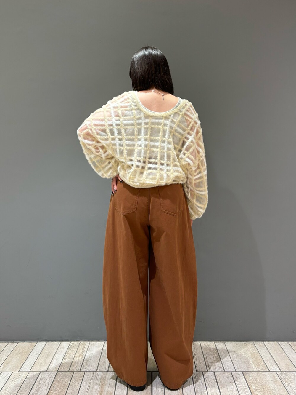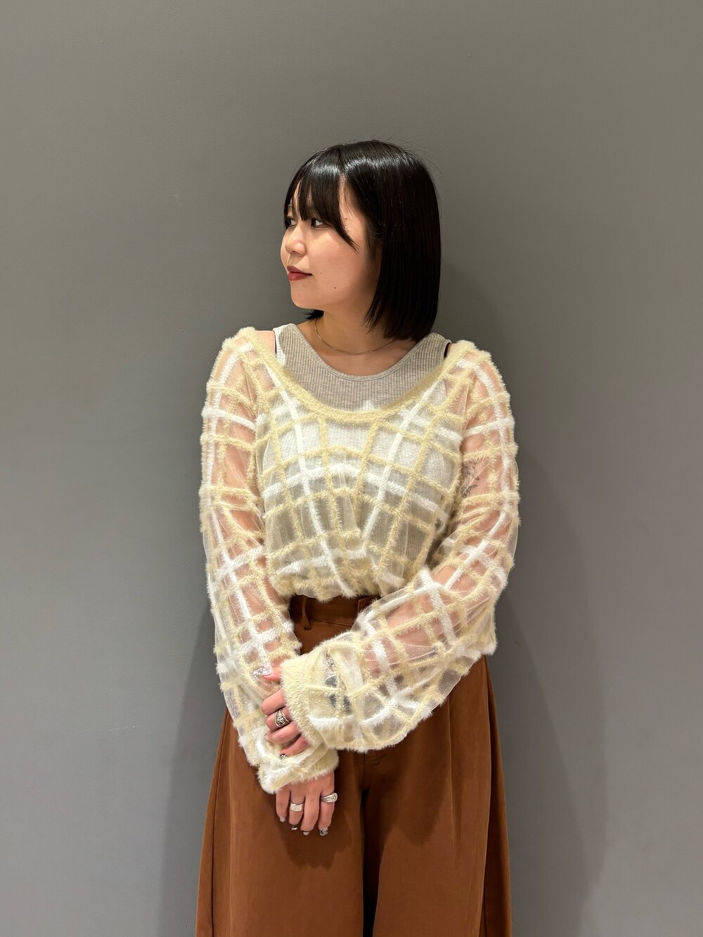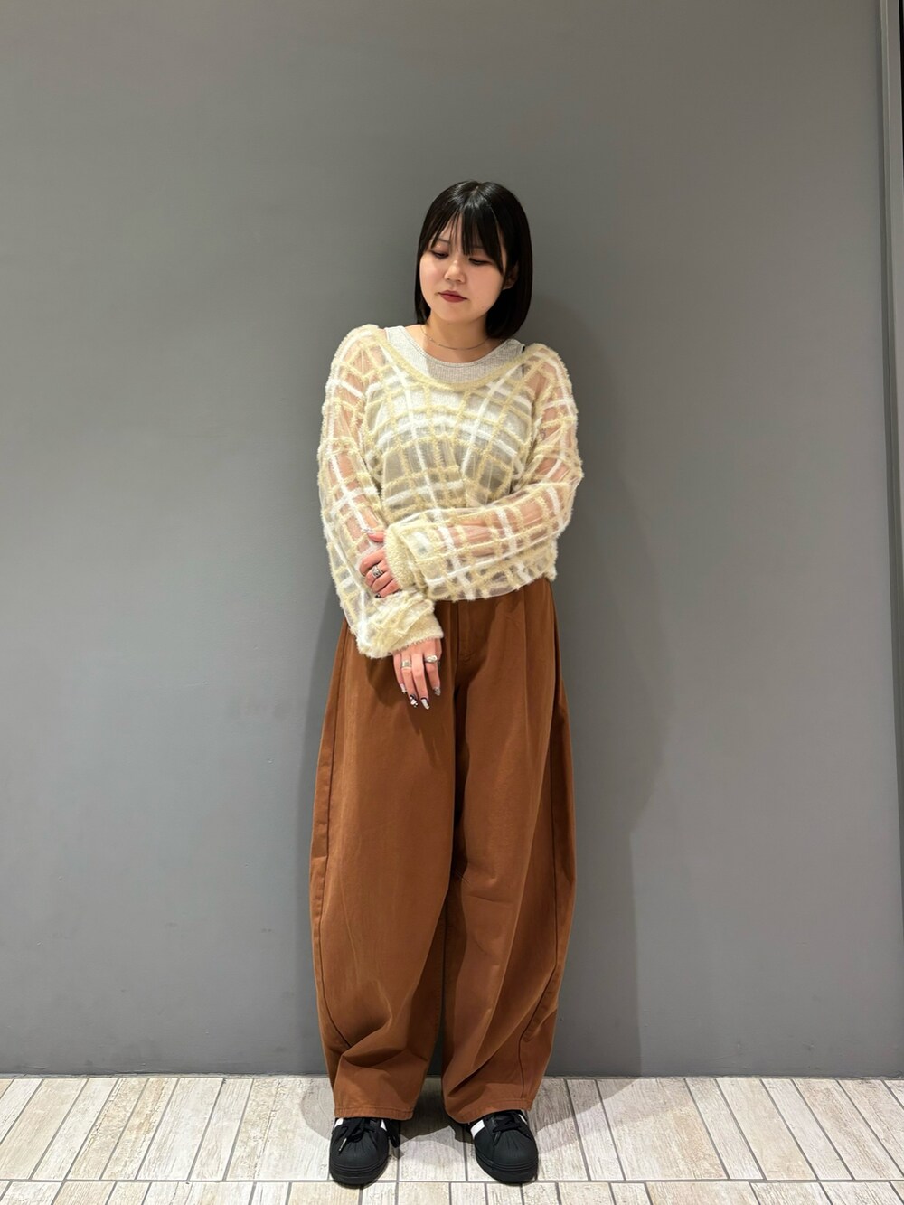 今回は、シアーチェックフェザーニット、RIBタンクトップ、ワンタックコクーンパンツを着てみました!