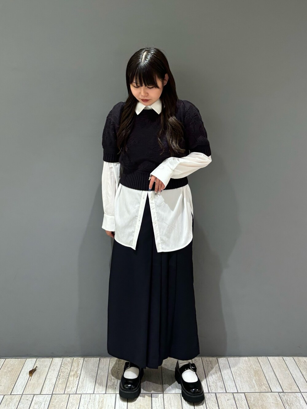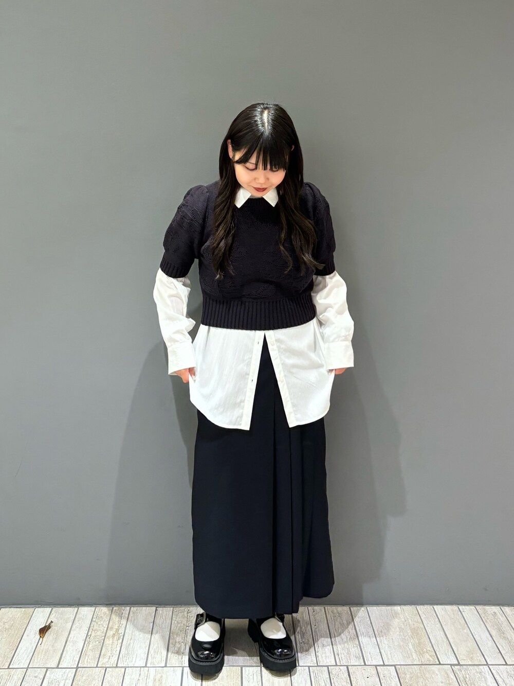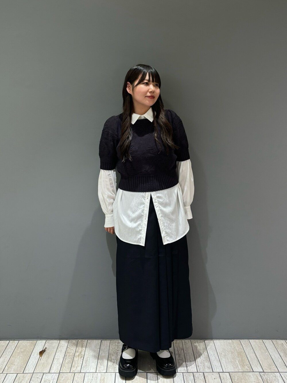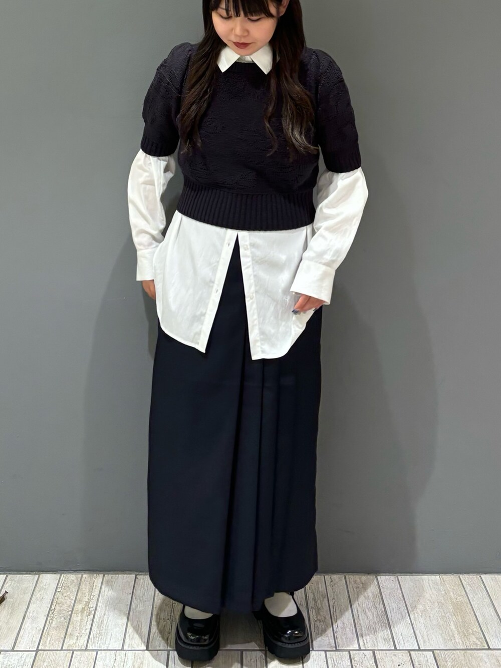 厚手の生地で朝晩は冷え込むけれど日中は暑いこの時期にピッタリの半袖ニットです!パフスリーブになっているので二の腕カバーにもってこいのアイテムです👍🏻骨格ストレートさんは肩幅が若干気になるかと思いますが、その分厚底などで下に重心を持ってくるとマシになるかと思います✌🏻フェミニンなアイテムになっているので、個人的にプリーツスカート合わせが学生っぽくて可愛いです♡