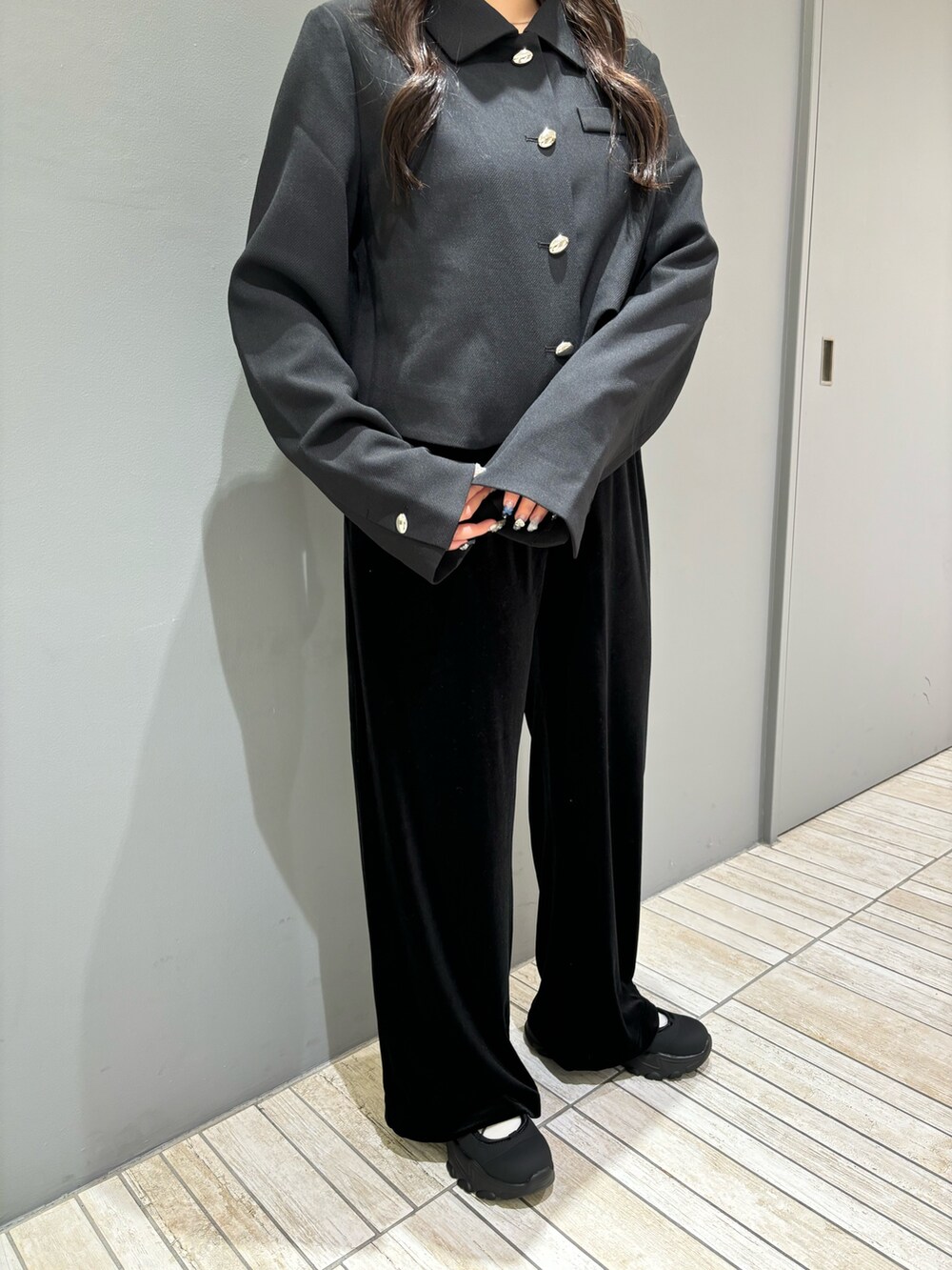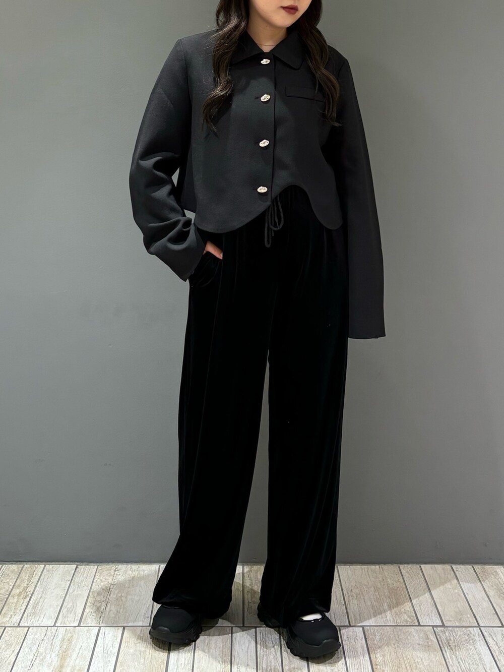 今回は、ジャケットをメインにして人気のベロアを個性派っぽく着てみました!秋のブラックコーデも可愛いですよ👀♡