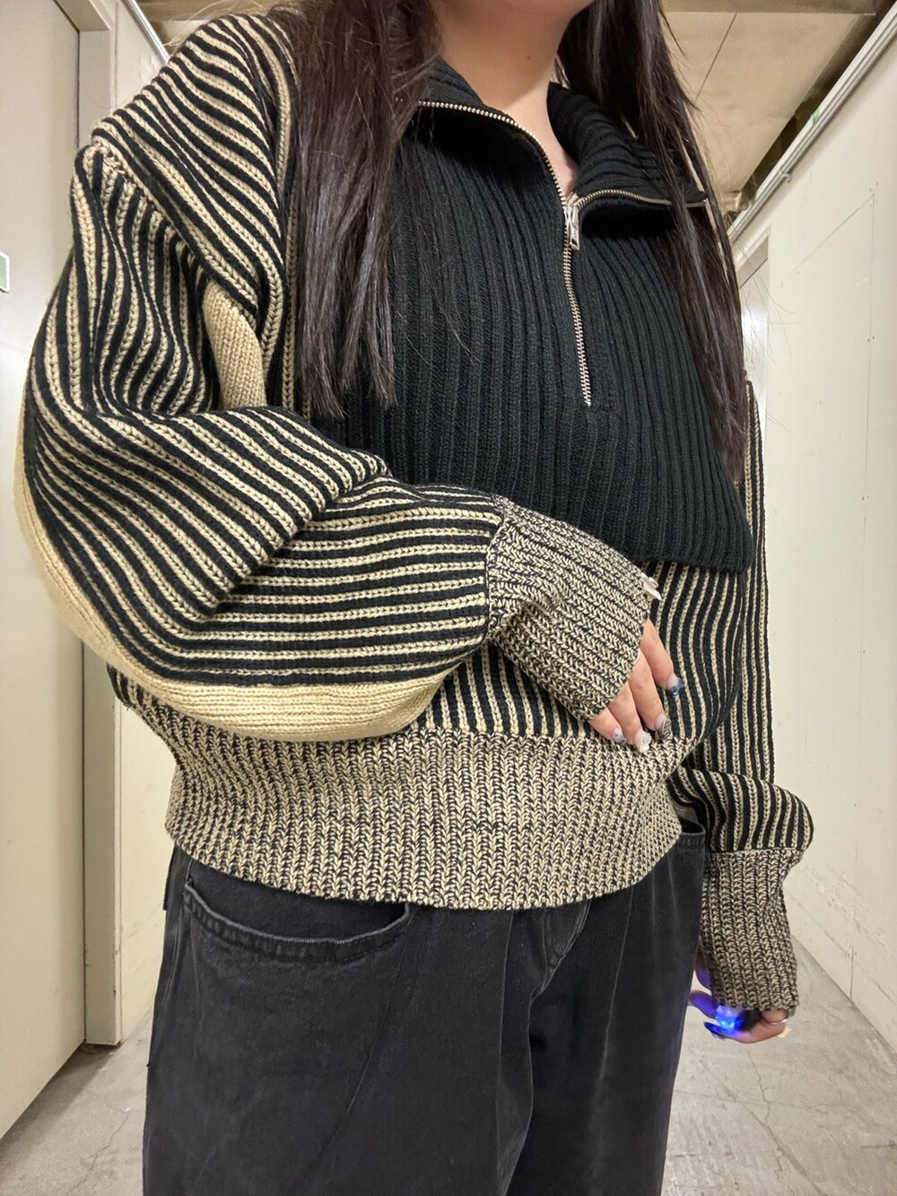 昨年も大人気だったニットがカラーリングをチェンジして今年も登場してます👍🏻ジップの閉め具合でスタンドネックにもなる優れものです!生地もしっかりとしているので今の時期から本格的な冬まで使っていただけます!