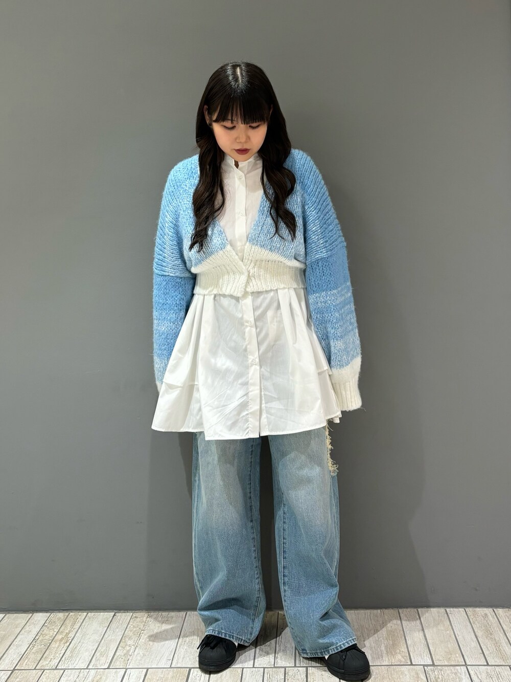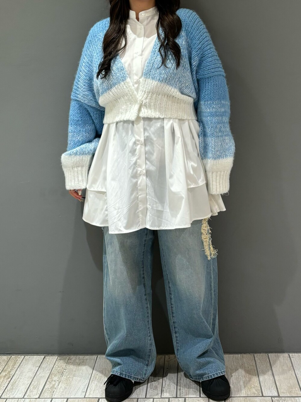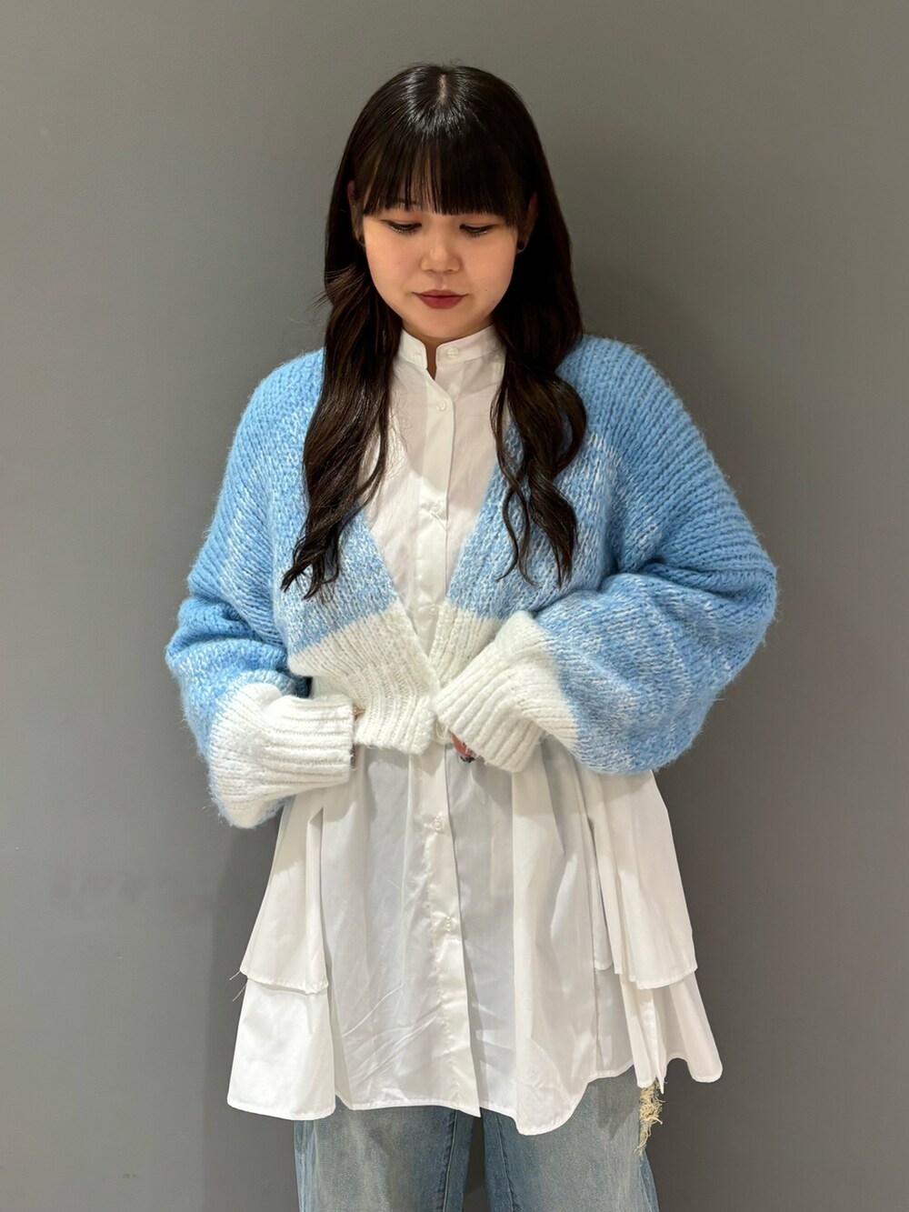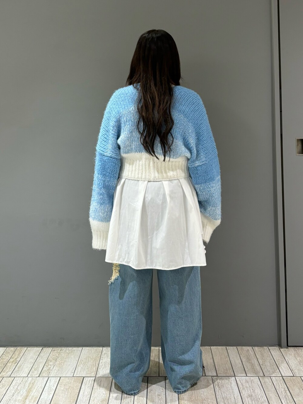 バイカラーのグラデーションが目を惹く存在感抜群のアイテムが入荷してます👀ゆったりとしたサイズ感になっているのでインナーを選ばず、タンクトップからタートルネックまでロングスパンで着ていただけます!コンパクトな着丈になっているので、ハイウエストのボトムスと合わせるとスタイルアップも叶います🌟