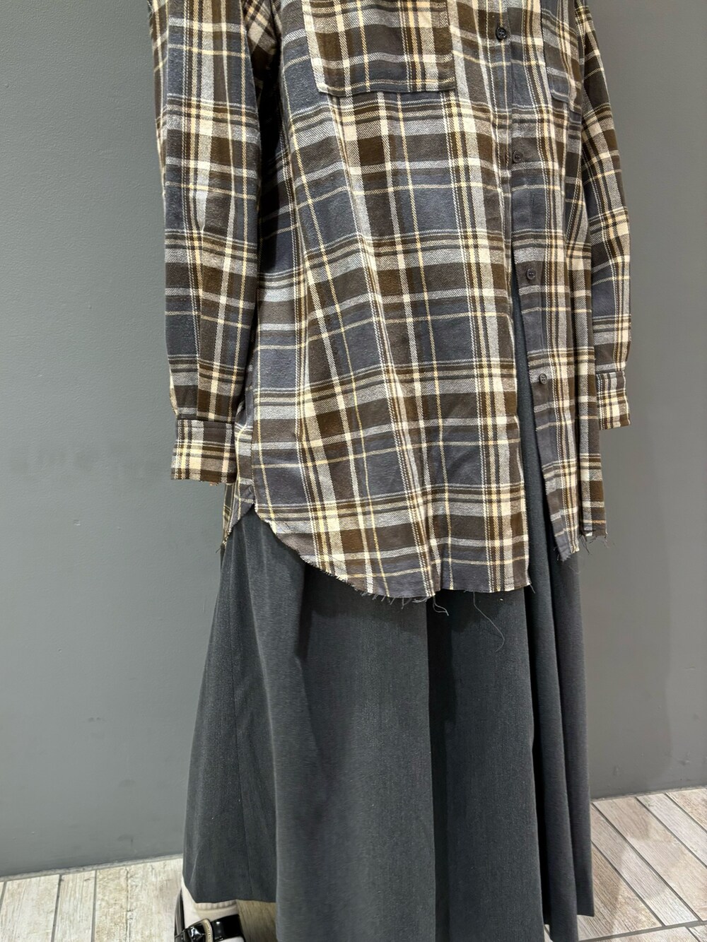 秋に着たいチェックシャツ!新作アイテムです👍🏻サイズ感は153cmの私が着て、おしりが全部隠れる長さなので体型カバーにもピッタリ!身幅もゆったりなので、インナーにタートルネックなどのニットを入れても十分余裕があります◎