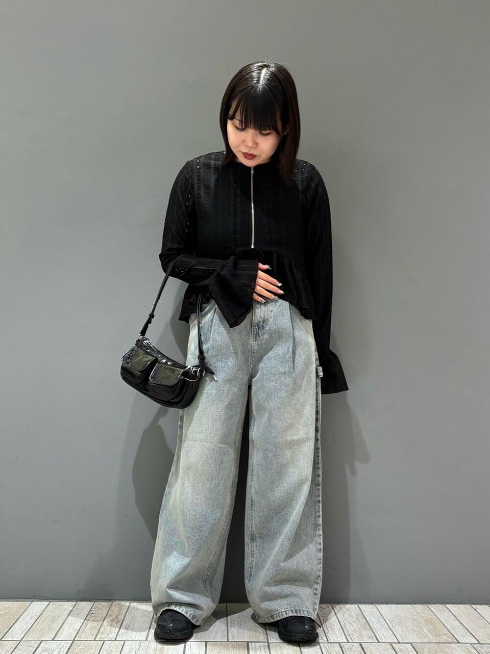 今回は、デニムのブルーを差し色に韓国っぽいブラックコーデを組んでみました!