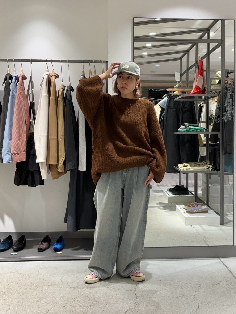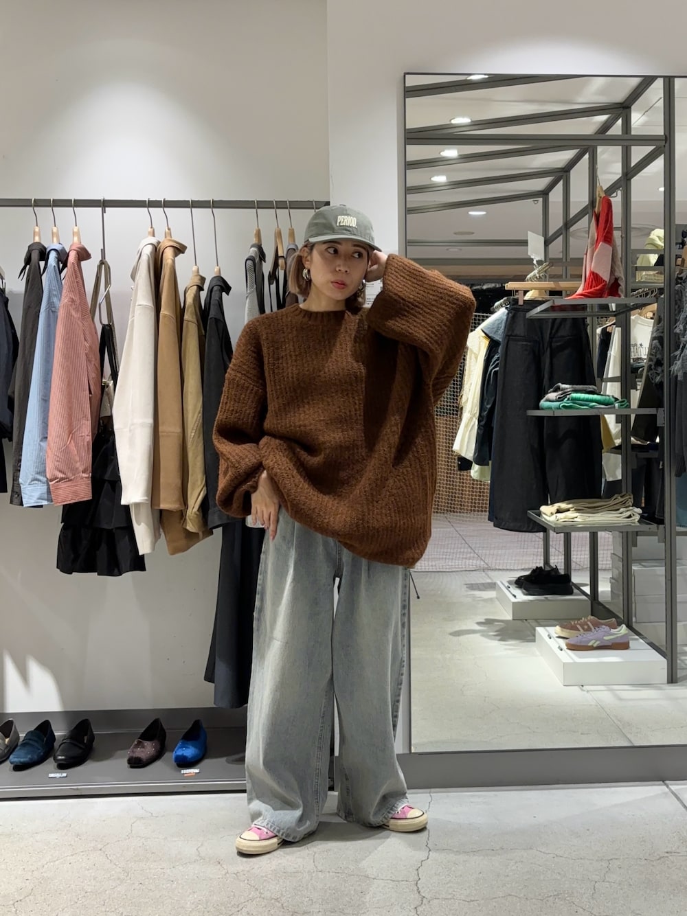 ボリュームニットミニワンピースとペインターWIDEデニムとプランプエンブロイダリーCAPを着用しました♪