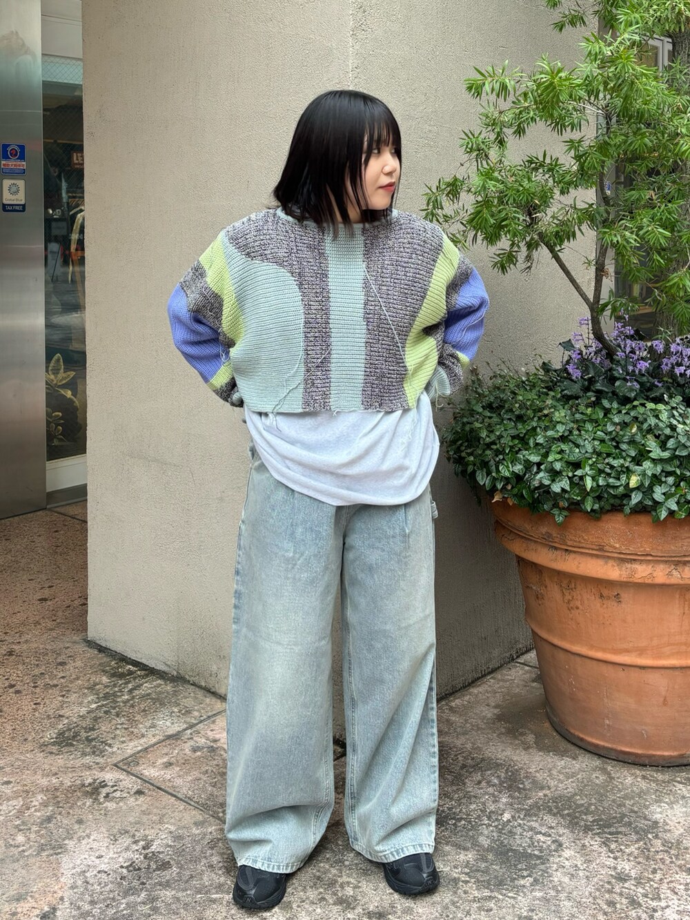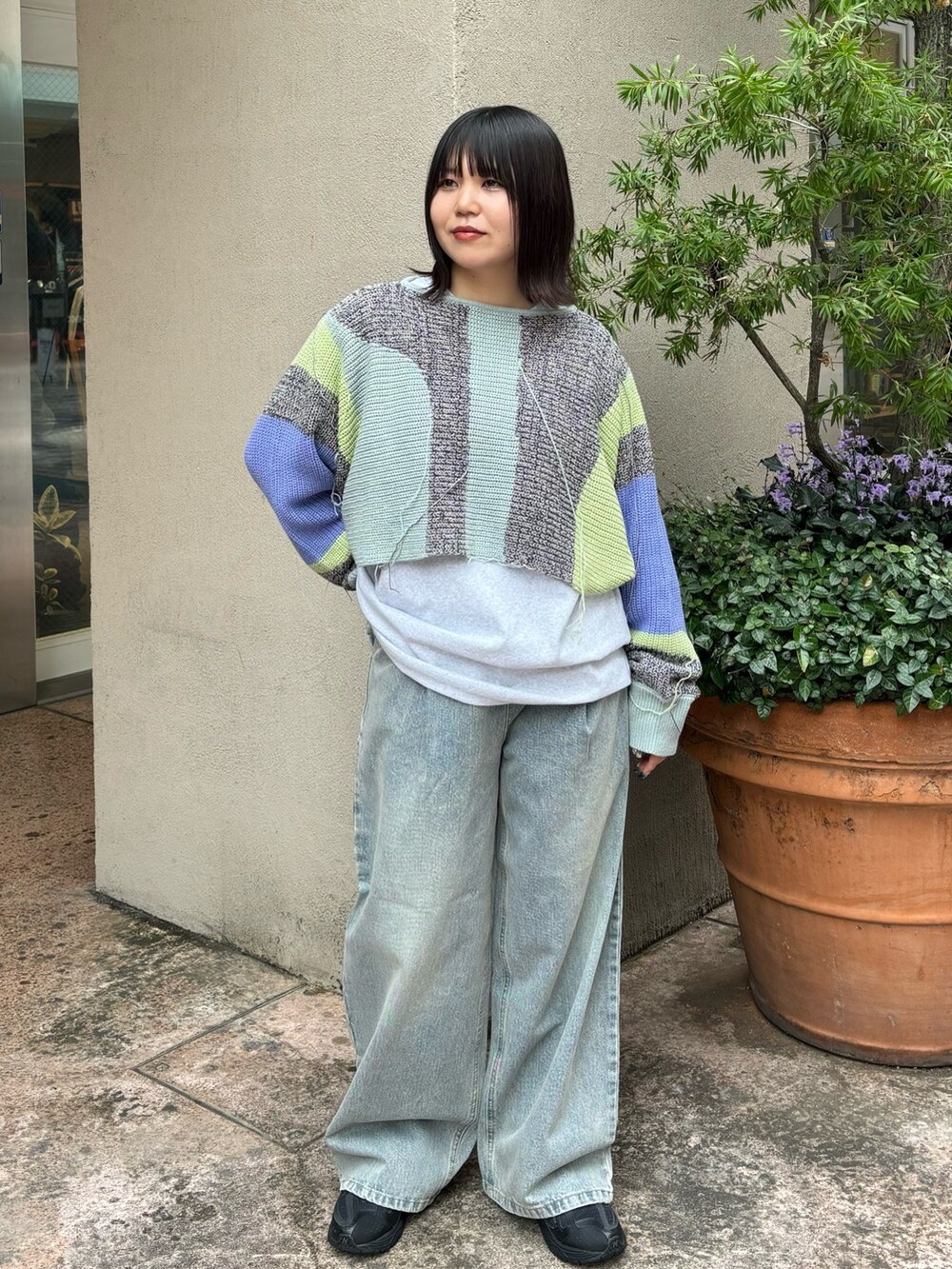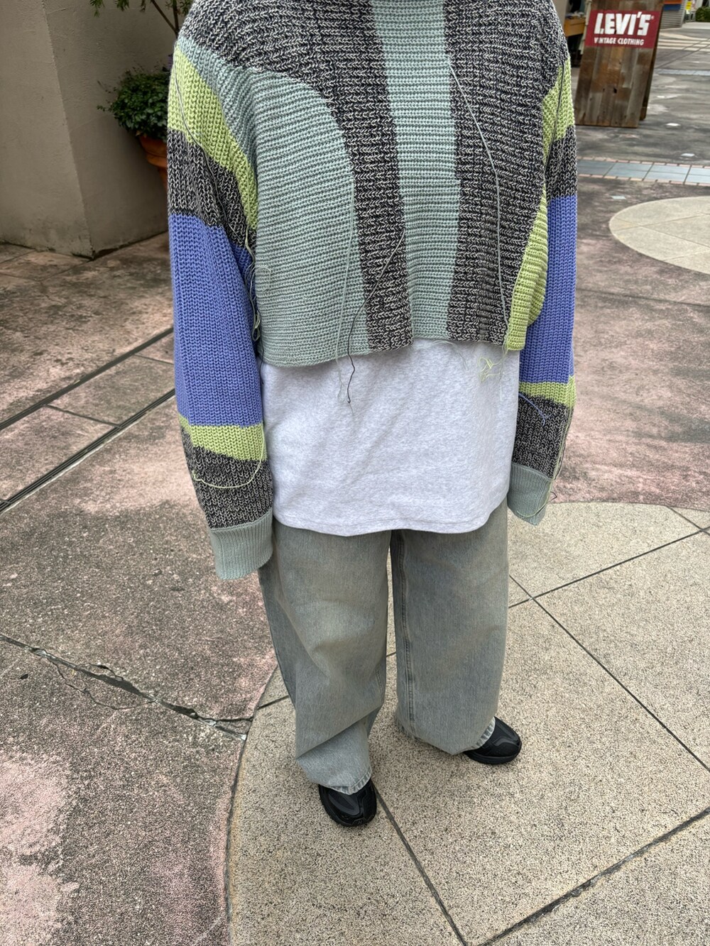 クロップド丈なのでハイウエストのボトムスやシルエットがスッキリしたアイテムと合わせるとスタイルアップします!!