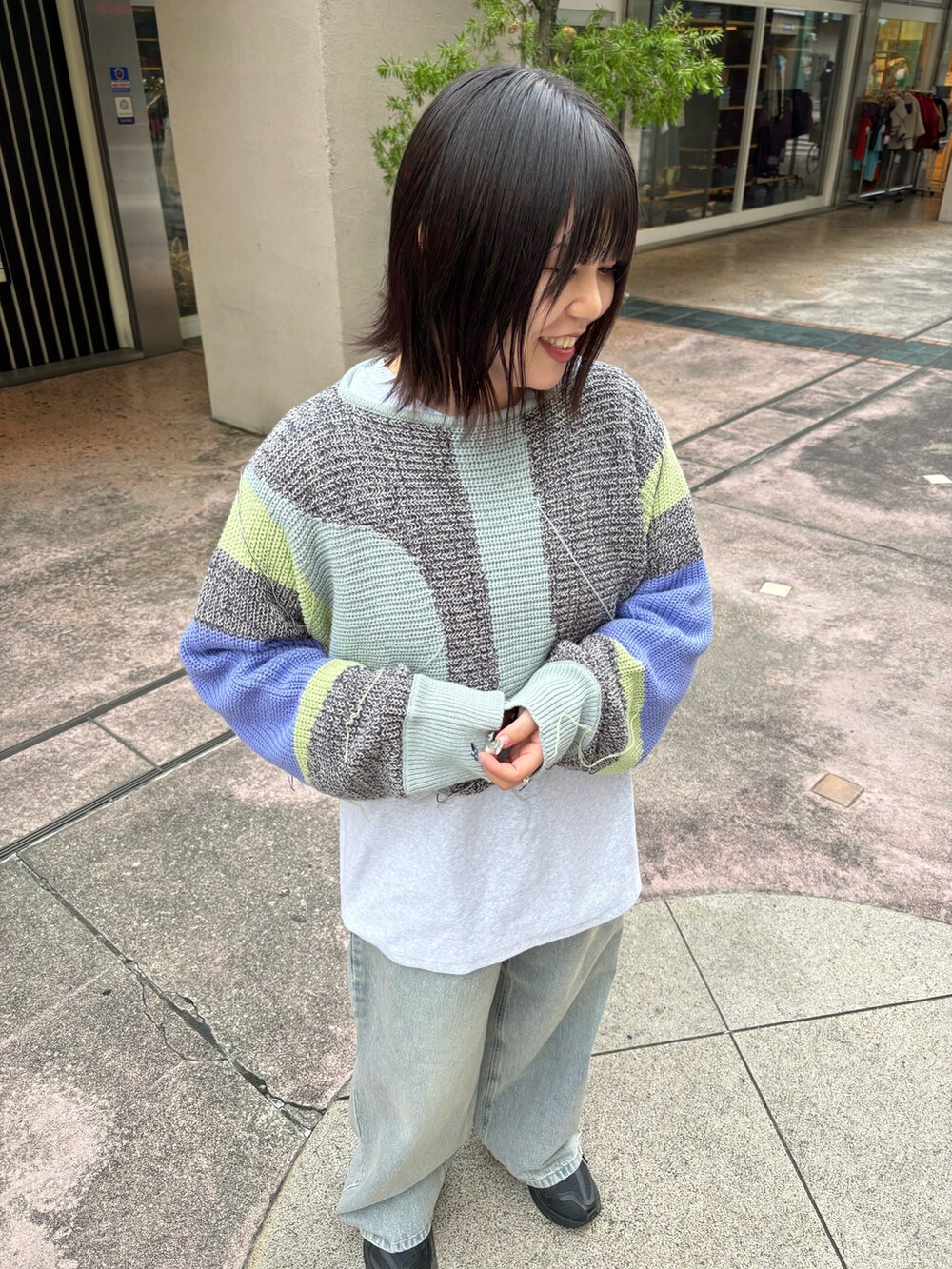 カラーの異なるニットを組み合わせたデザインが可愛い新作アイテムです!所々にフリンジが施されているのでデザインに飽きが来ないのも嬉しいですよね🌟