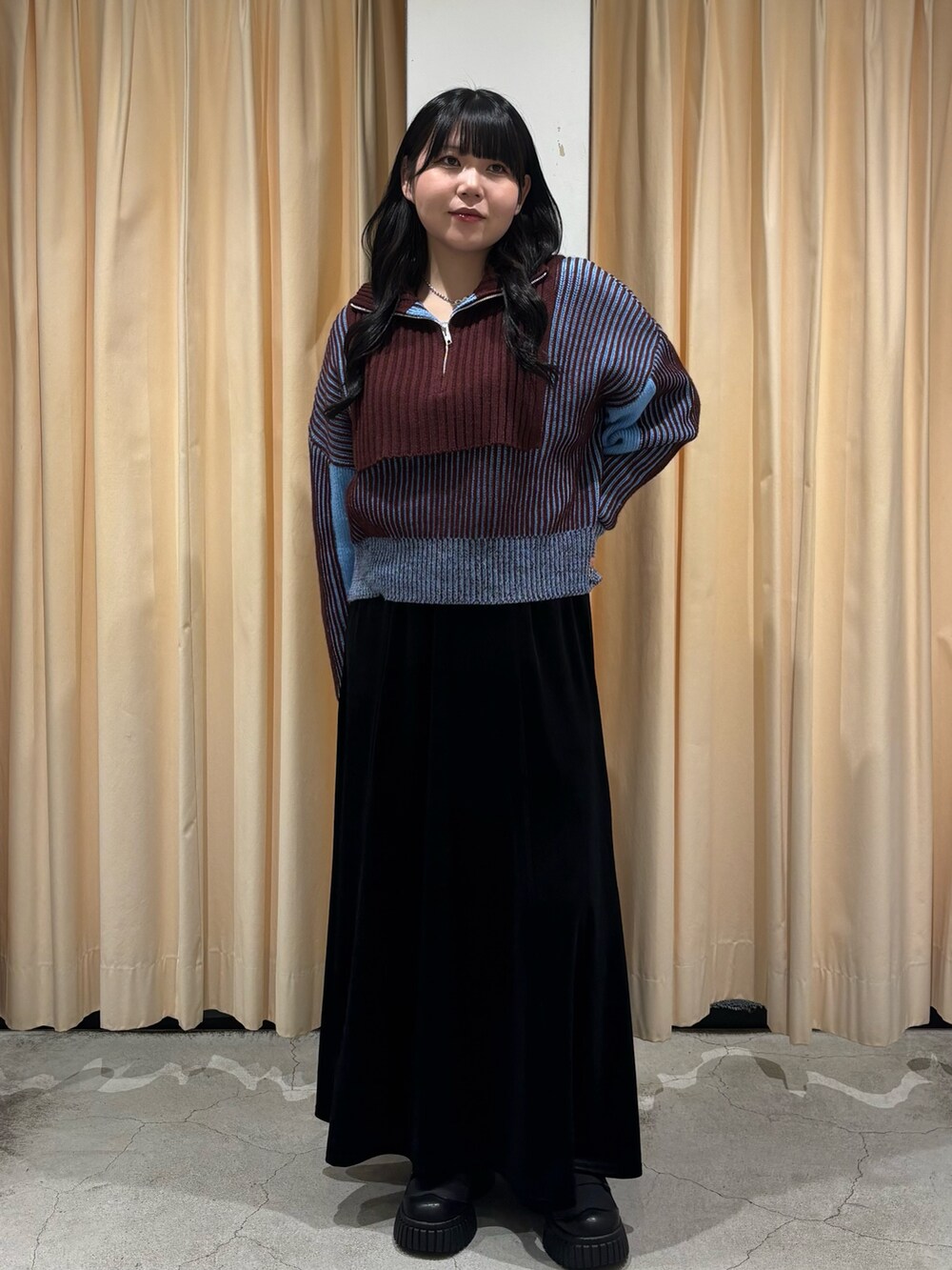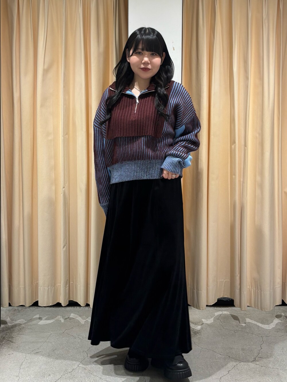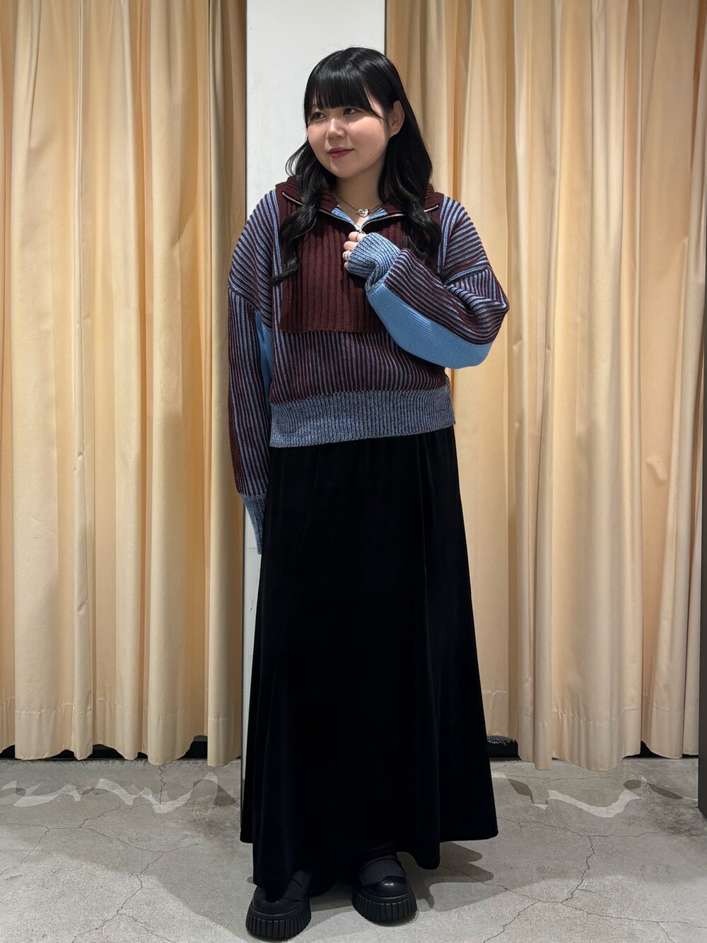 今回は、大人気のニットを使った大人っぽキレイめコーデを組んでみました!ベロアのスカート合わせおすすめですヨ👀