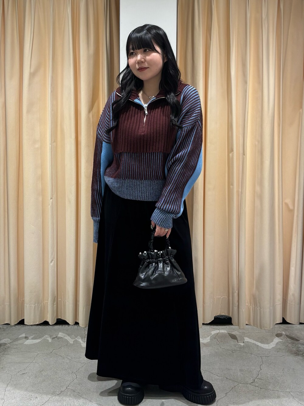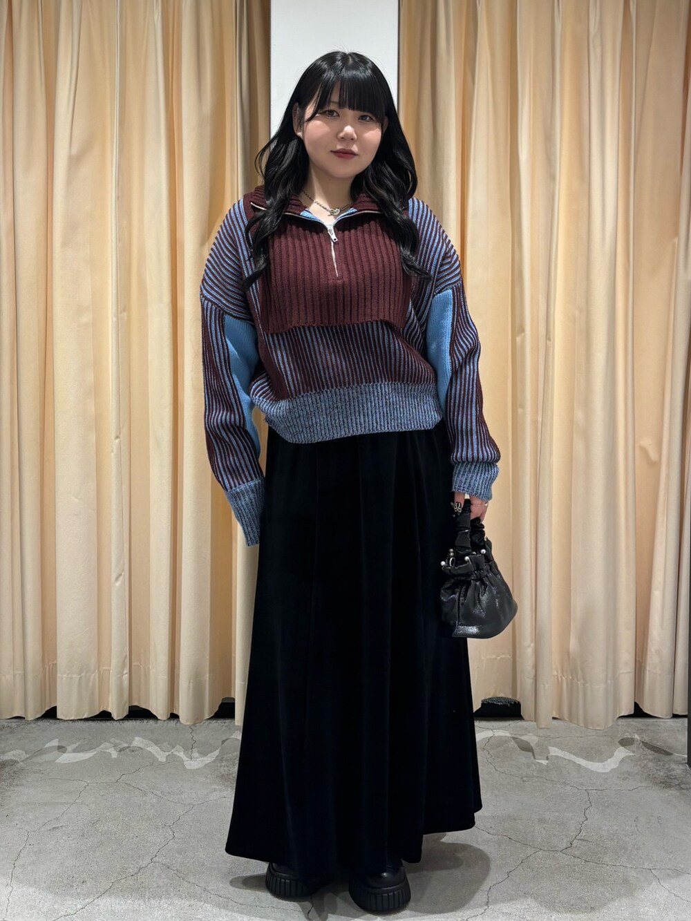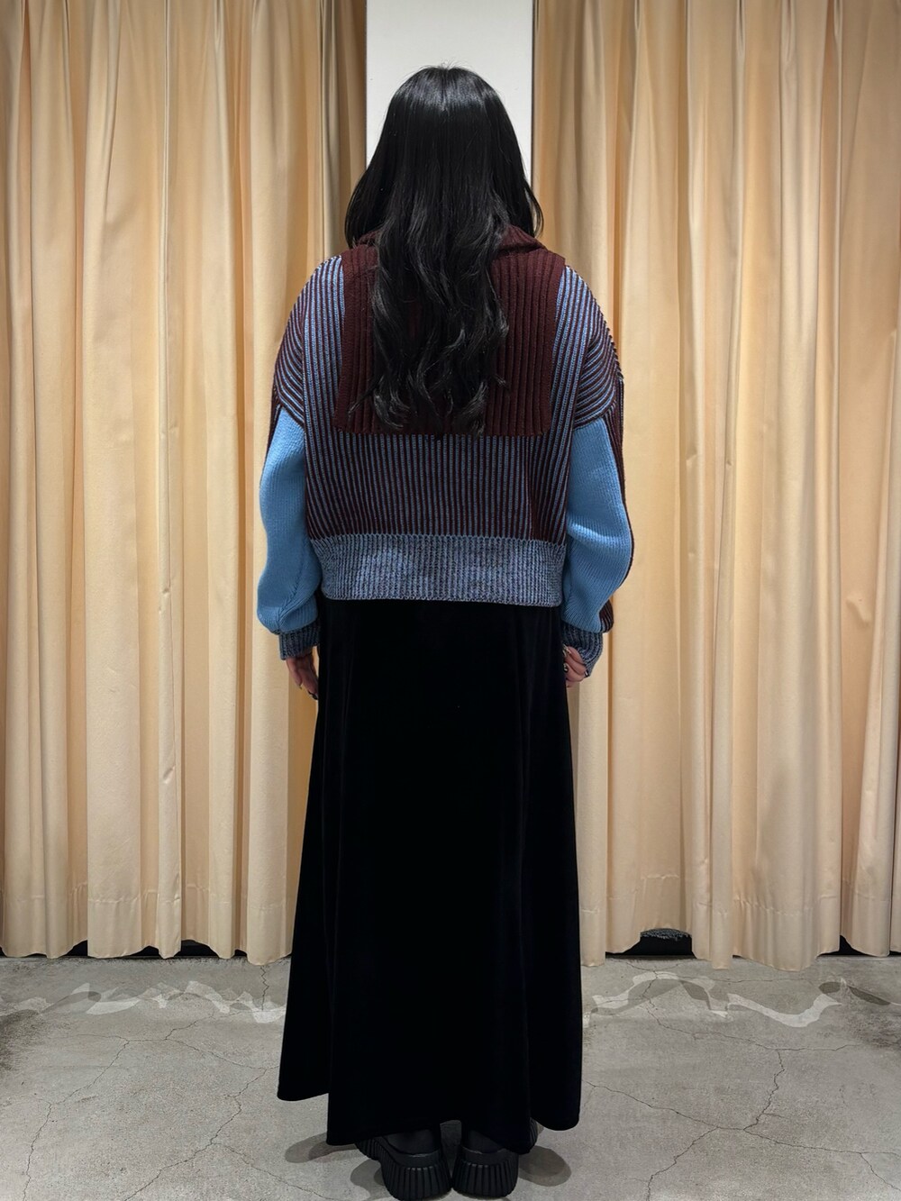 今回は、大人気のニットを使った大人っぽキレイめコーデを組んでみました!ベロアのスカート合わせおすすめですヨ👀