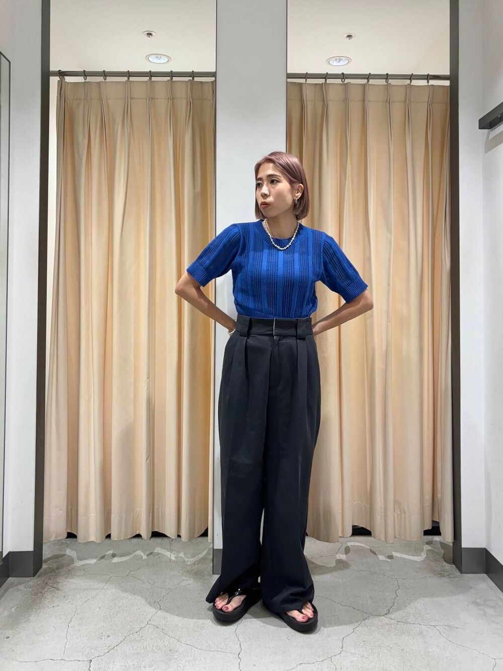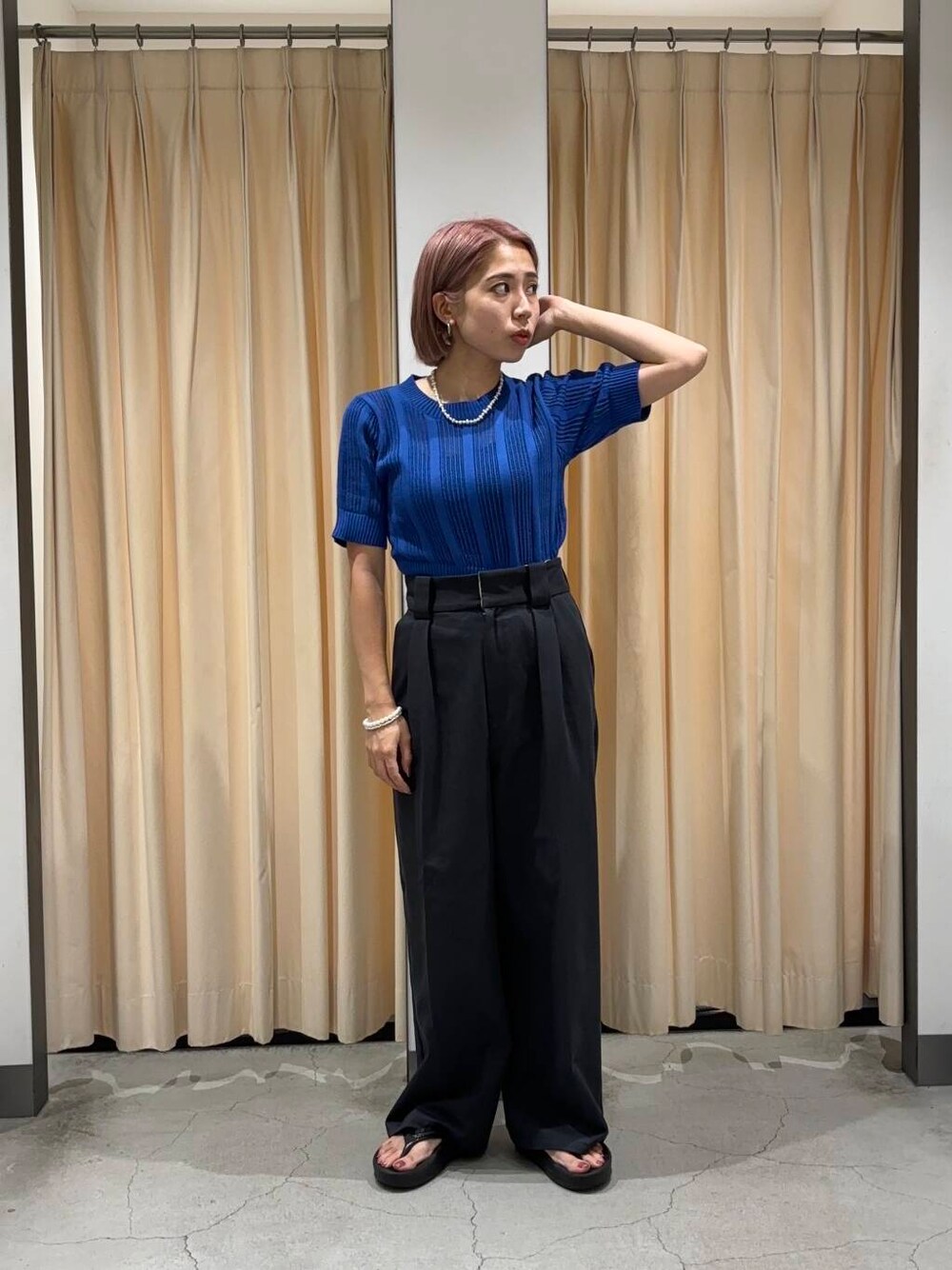 シアーストライプコンパクトニットとチノタックWIDEパンツを着用しました☆